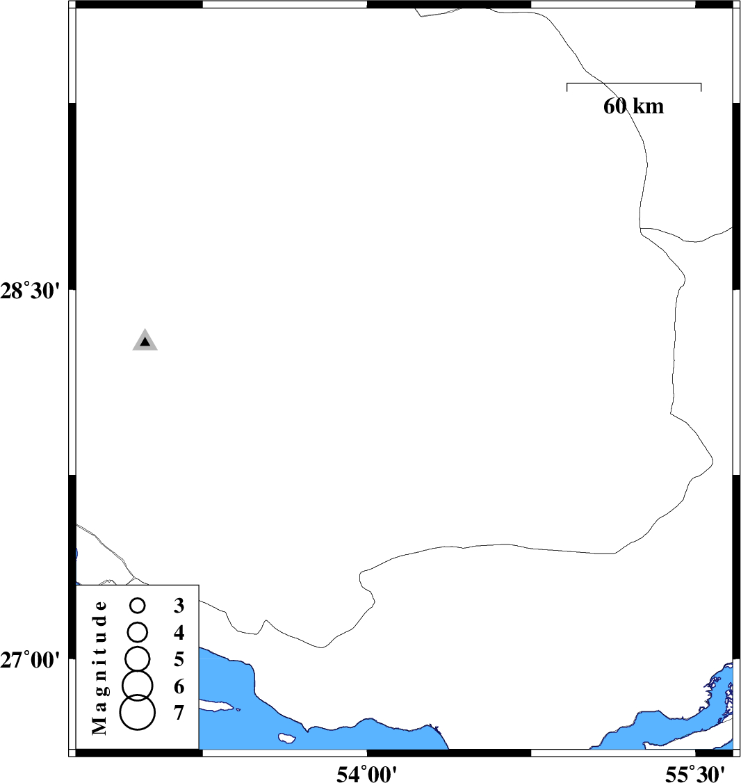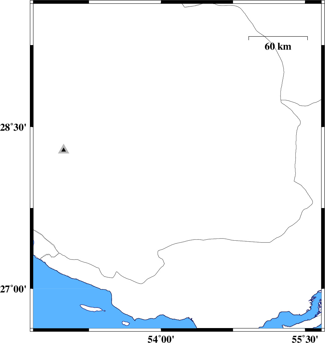 | 2013/07/22 | 18:39:49.2 | 23:09:49.2 | 28.13 | 54.17 | 14 | ML3 | Fars Province, 53 km North-West of Lar |