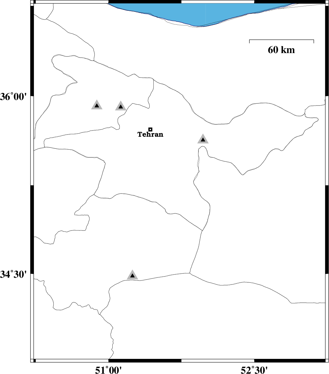 | 2013/06/25 | 11:11:46.7 | 15:41:46.7 | 35.49 | 52.37 | 19 | ML2.7 | Tehran Province, 30 km North of Garmsar |
