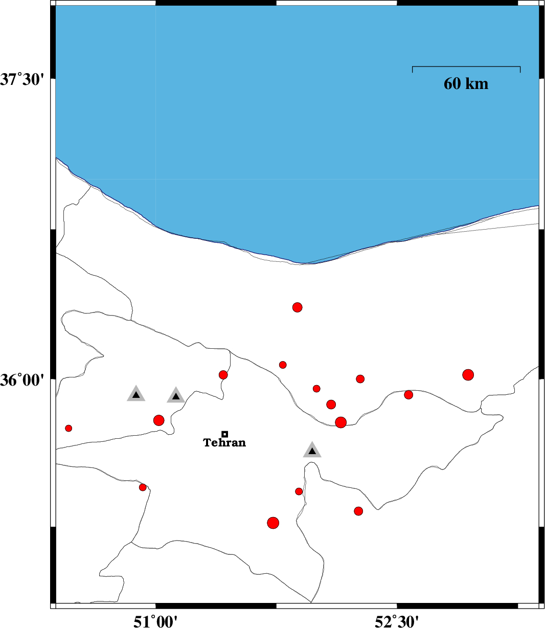 | 2013/06/29 | 06:56:12.5 | 11:26:12.5 | 36.07 | 51.79 | 14 | ML2 | Mazandaran Province, 43 km North-East of Tajrish | ||