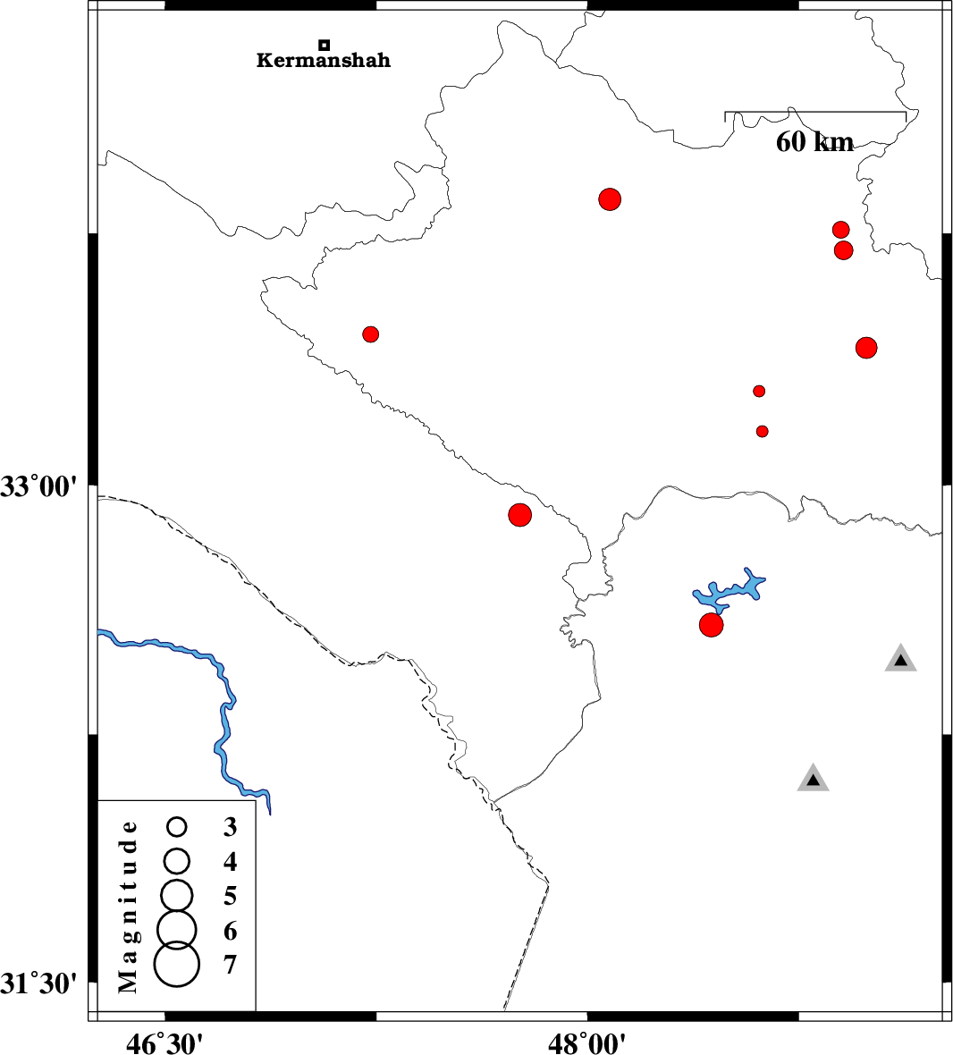 | 2013/08/06 | 07:33:39.1 | 12:03:39.1 | 32.91 | 47.76 | 14 | ML3.6 | Ilam Province, 27 km South of Pol-e dokhtar | ||
