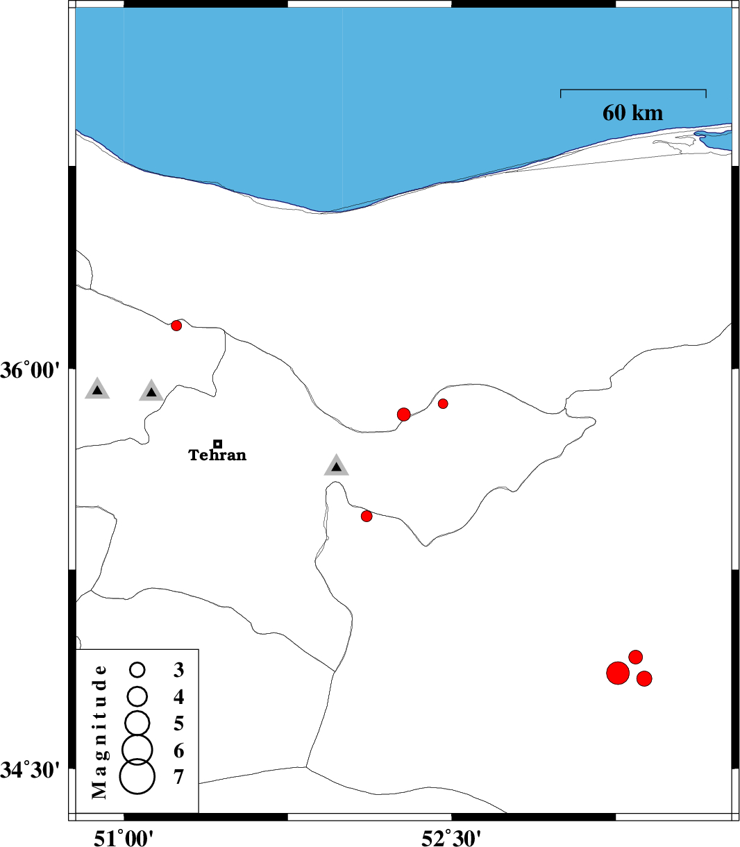 | 2013/08/03 | 15:25:07.3 | 19:55:07.3 | 34.86 | 53.26 | 15 | ML4.7 | Semnan Province, 80 km South-West of Semnan | ||