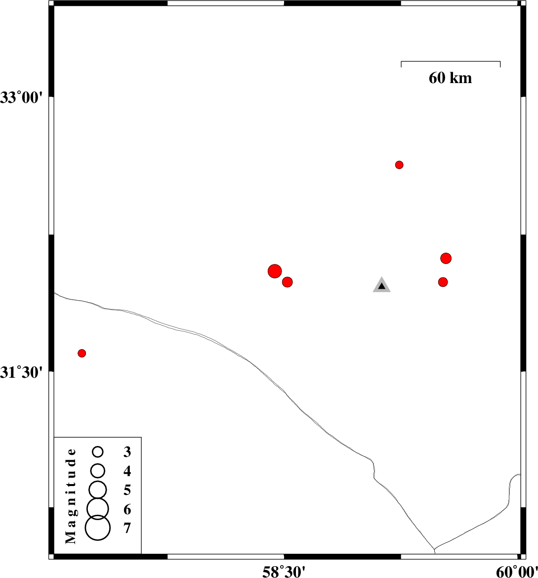 | 2013/08/16 | 15:42:50.6 | 20:12:50.6 | 31.99 | 58.52 | 14 | ML3 | Khorasan(south) Province, 121 km South-West of Birjand | ||