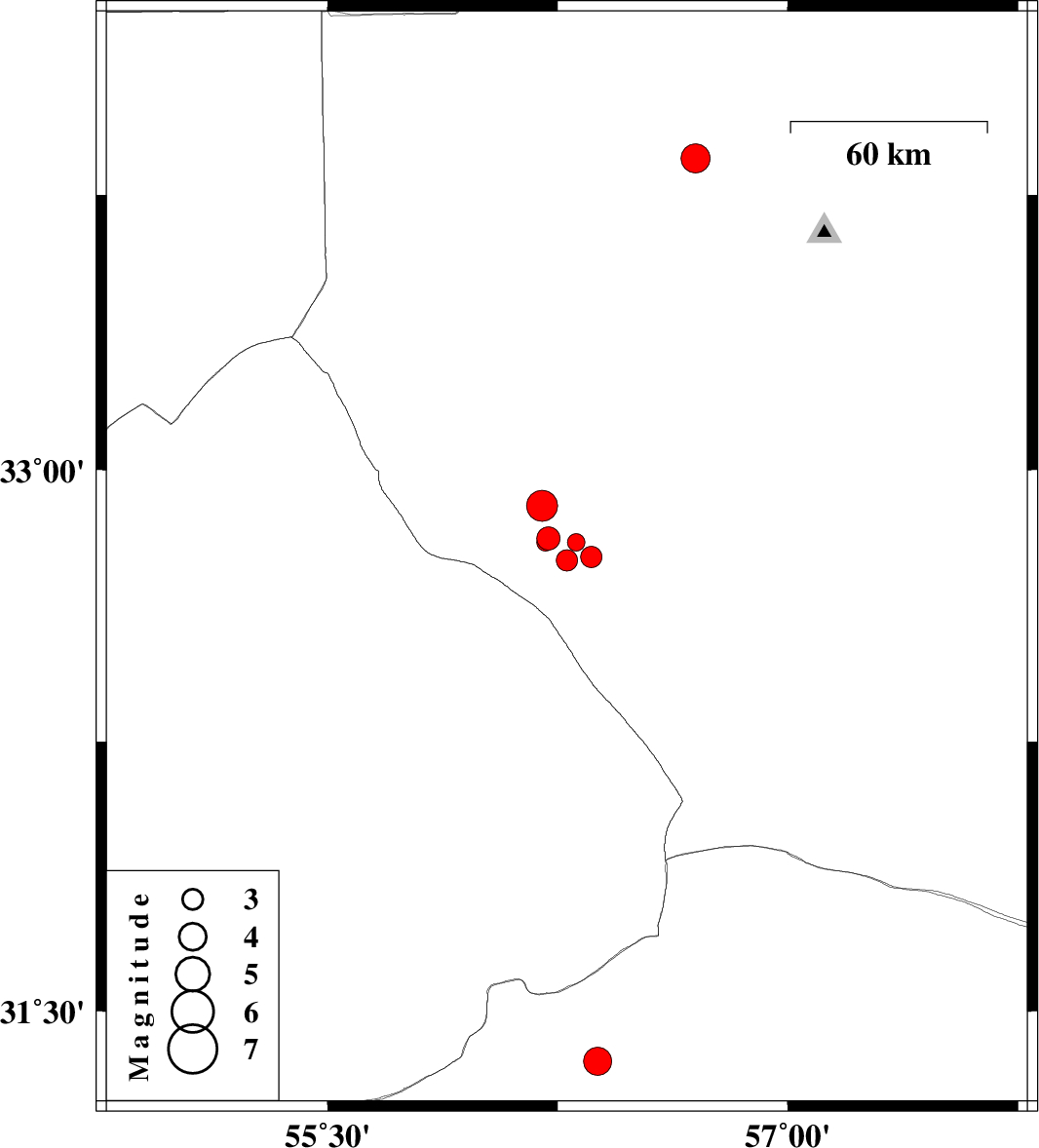 2013/08/10 12:08:01.6 16:38:01.6 33.8556.713 ML4.3 Yazd Province, 34 km North-West of Tabas