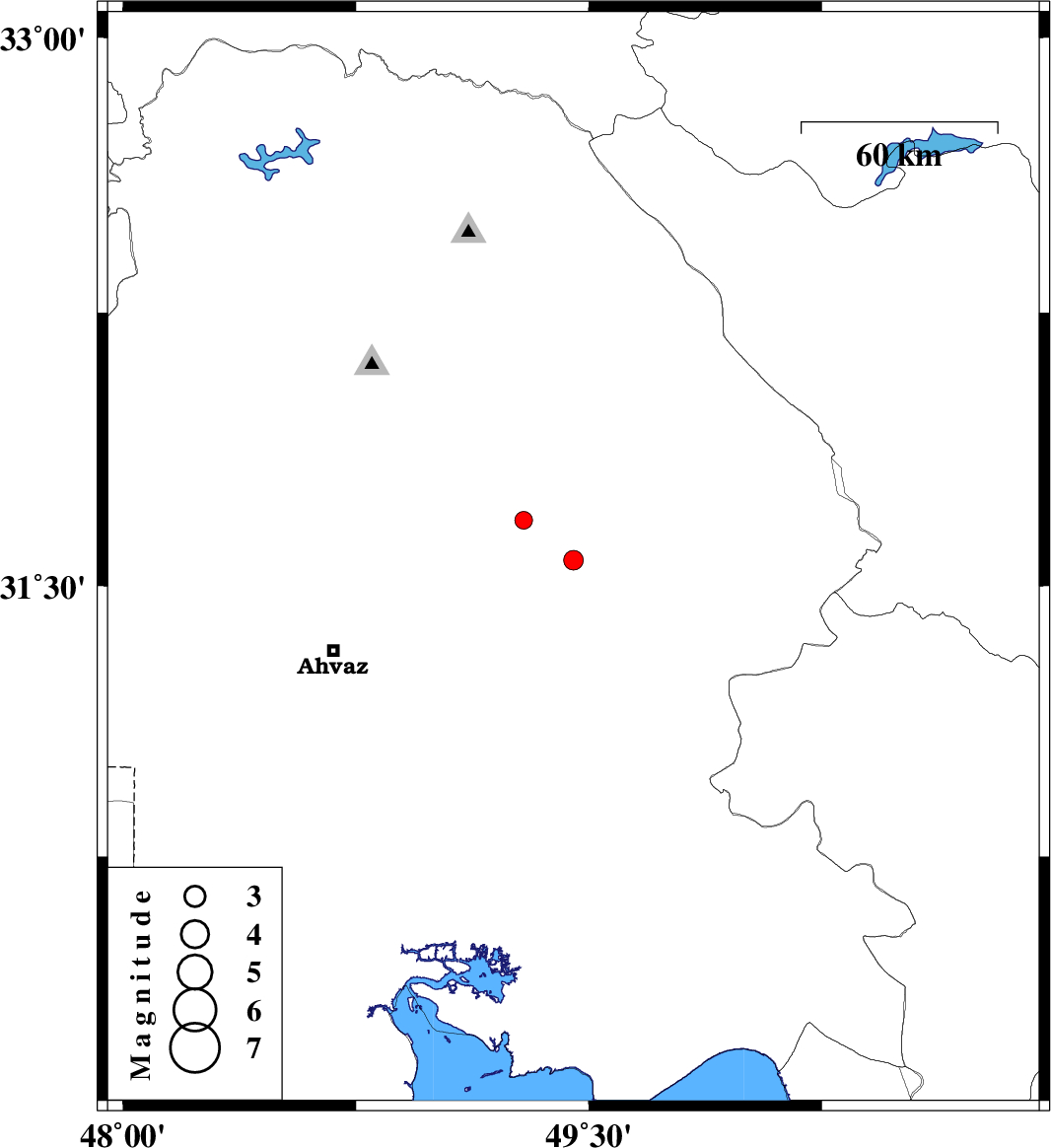 | 2013/08/24 | 04:16:34.5 | 08:46:34.5 | 31.57 | 49.45 | 37 | ML2.8 | Khoozestan Province, 36 km North-West of Ramhormoz | ||
