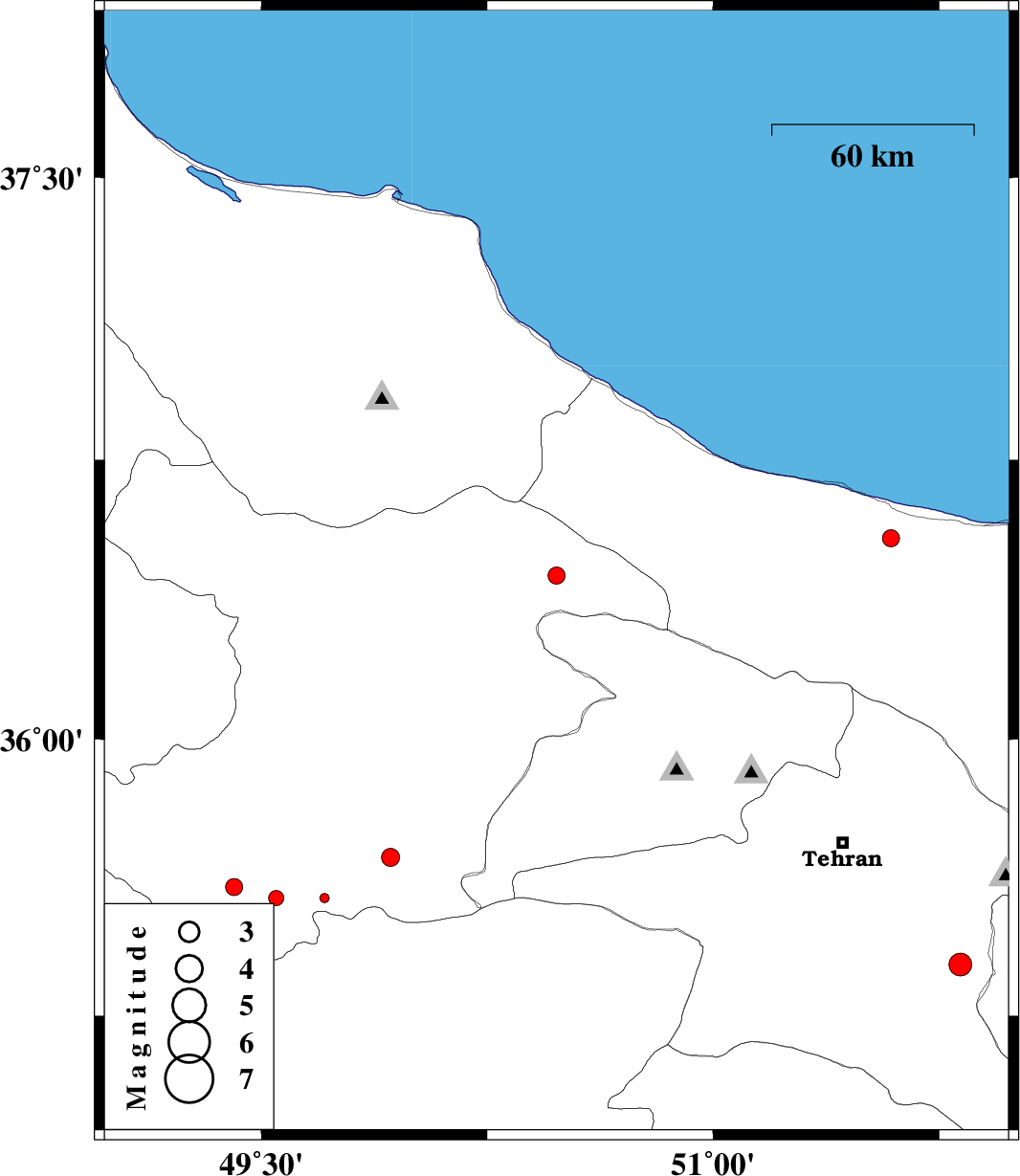 | 2013/08/07 | 19:10:10.4 | 23:40:10.4 | 35.57 | 49.55 | 14 | ML2.2 | Ghazvin Province, 57 km South-West of Takestan |