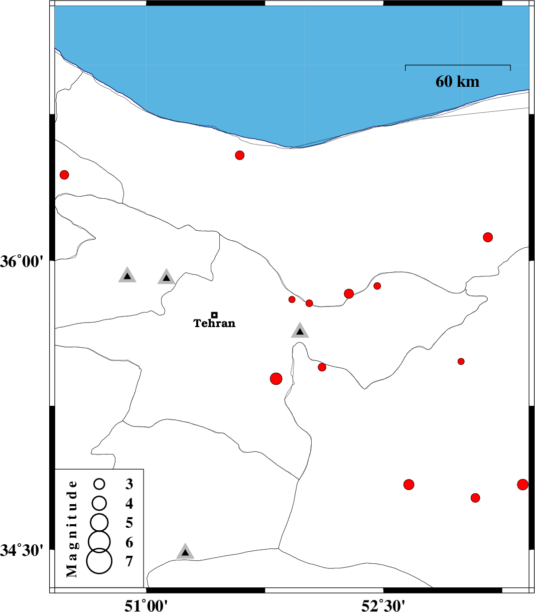 | 2013/08/04 | 02:51:44.1 | 07:21:44.1 | 35.45 | 52.11 | 19 | ML2.2 | Semnan Province, 30 km South of Damavand |