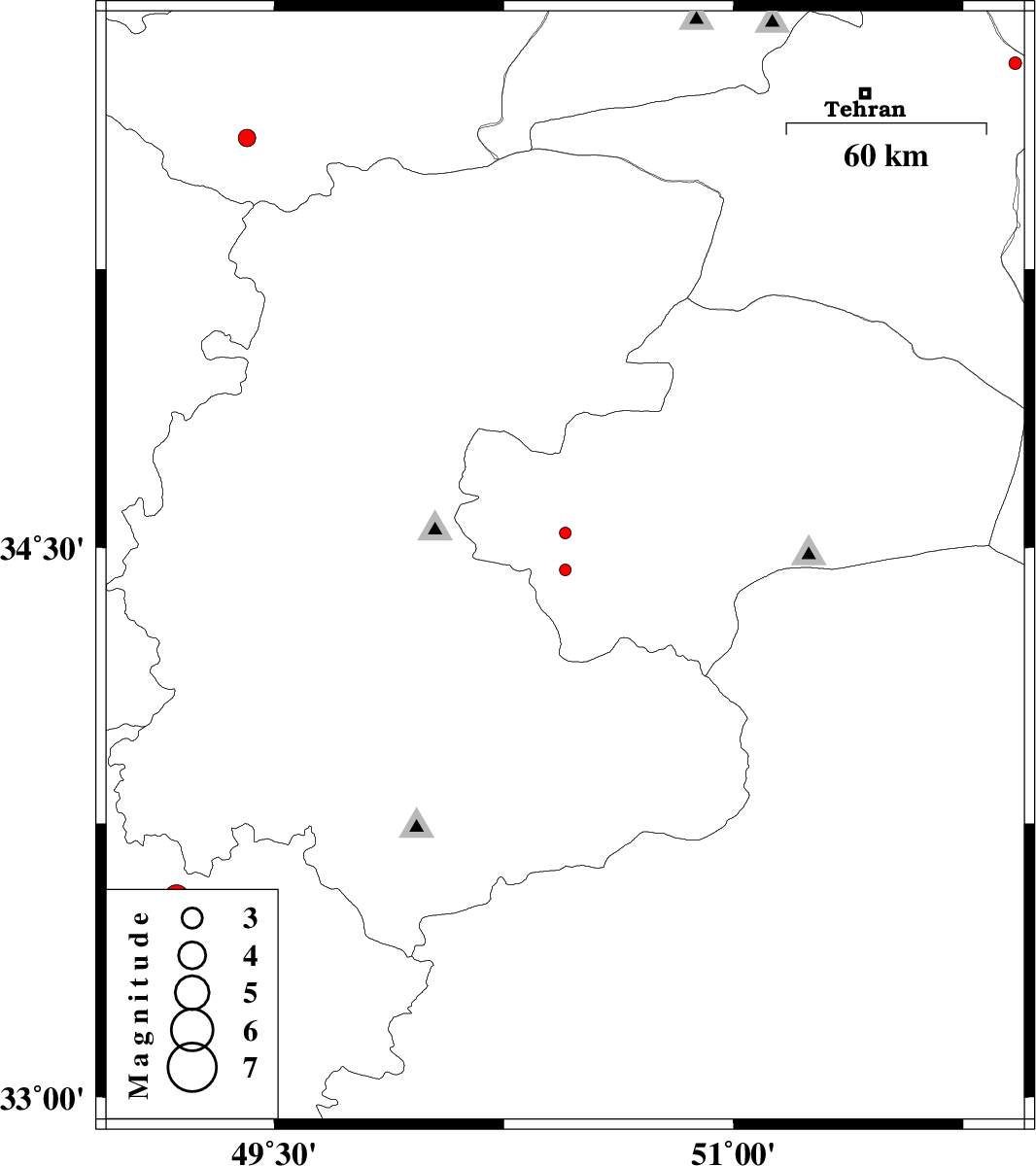| 2013/09/03 | 15:15:45.2 | 19:45:45.2 | 34.54 | 50.45 | 14 | ML1.7 | Qom Province, 41 km East of Ashtiyan | ||