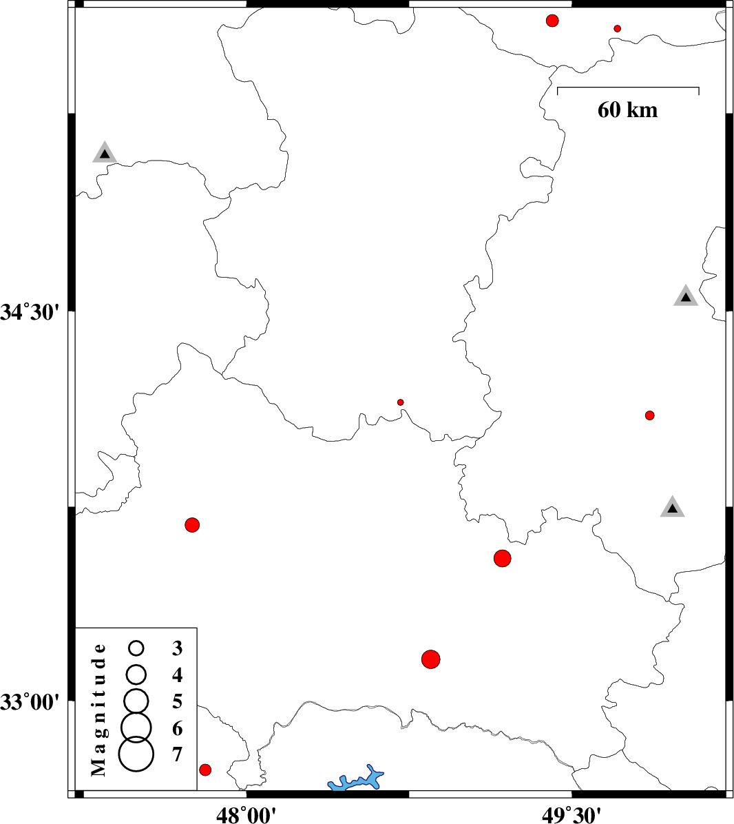| 2013/09/10 | 15:29:45.1 | 19:59:45.1 | 33.68 | 47.75 | 18 | ML3 | Lorestan Province, 21 km North-East of Kuhdasht | ||