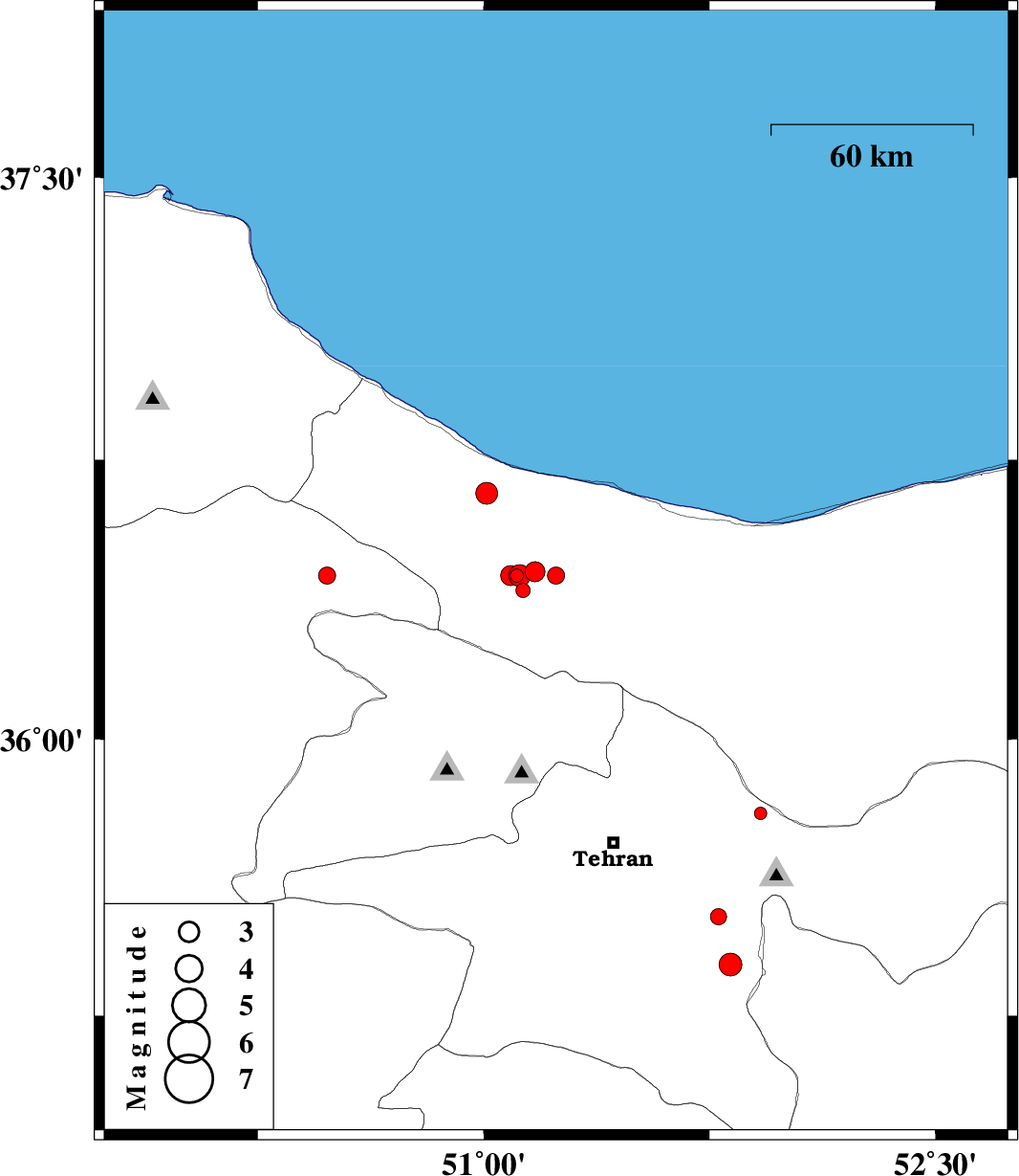 | 2013/09/12 | 02:32:32.4 | 07:02:32.4 | 36.66 | 51.01 | 14 | ML3.2 | Mazandaran Province, 20 km South-East of Tonekabon | ||
