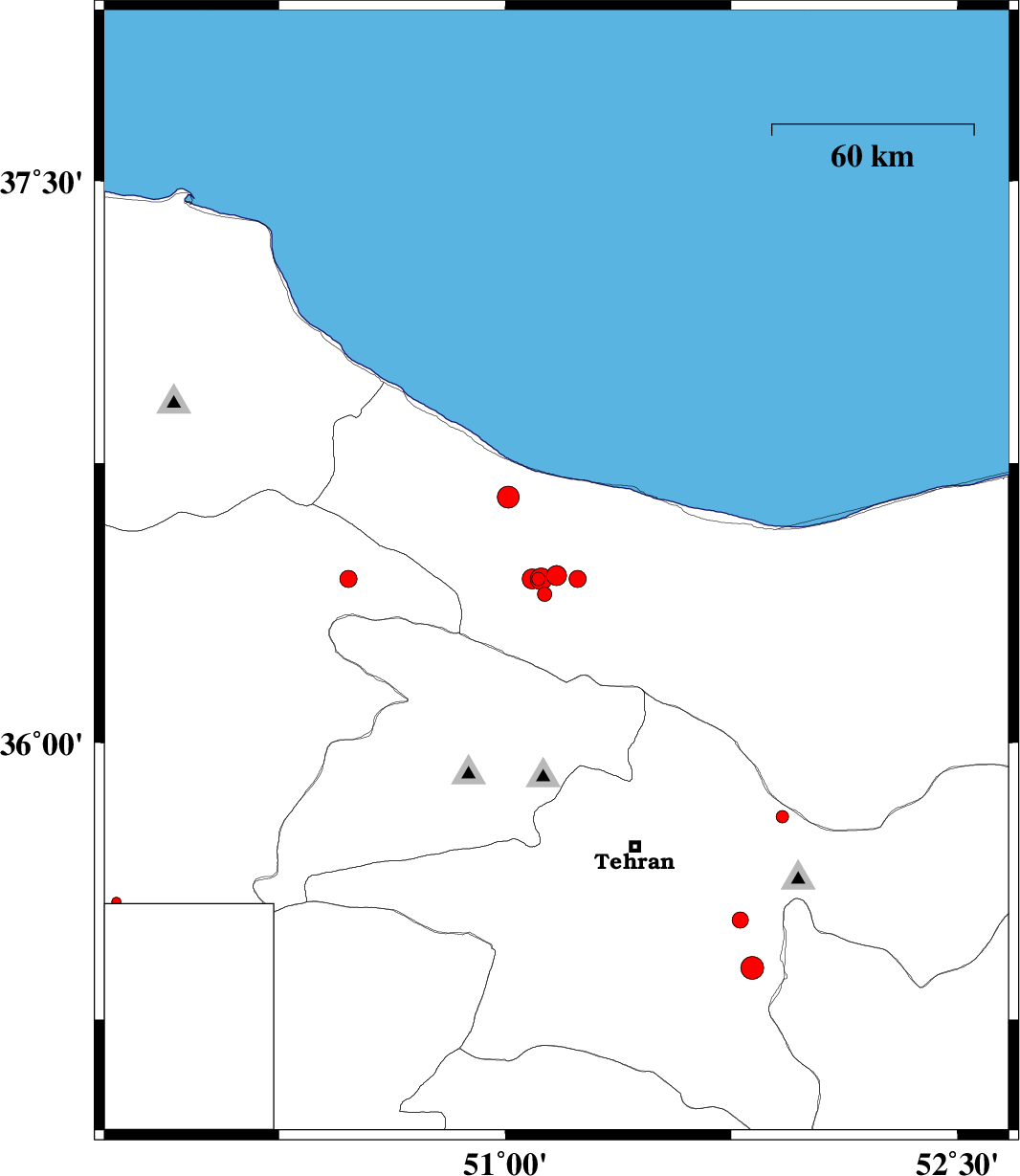 | 2013/09/12 | 02:32:32.4 | 07:02:32.4 | 36.66 | 51.01 | 14 | ML3.2 | Mazandaran Province, 20 km South-East of Tonekabon | ||