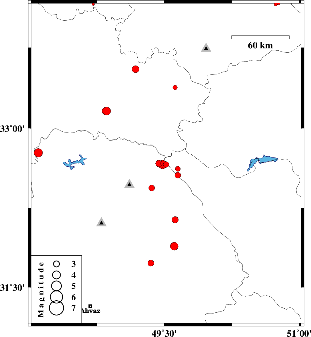 | 2013/09/24 | 15:45:23.6 | 19:15:23.6 | 31.89 | 49.61 | 14 | ML4 | Khoozestan Province, 26 km West of Izeh | ||