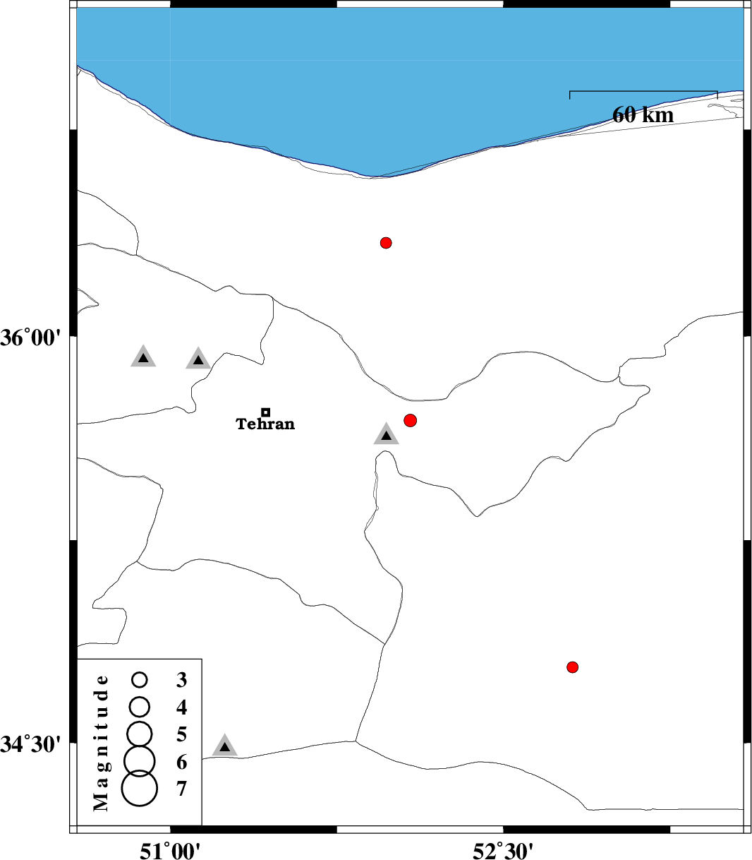 | 2013/10/08 | 05:51:10.9 | 09:21:10.9 | 34.78 | 52.81 | 21 | ML2.3 | Semnan Province, 65 km South-East of Garmsar | ||