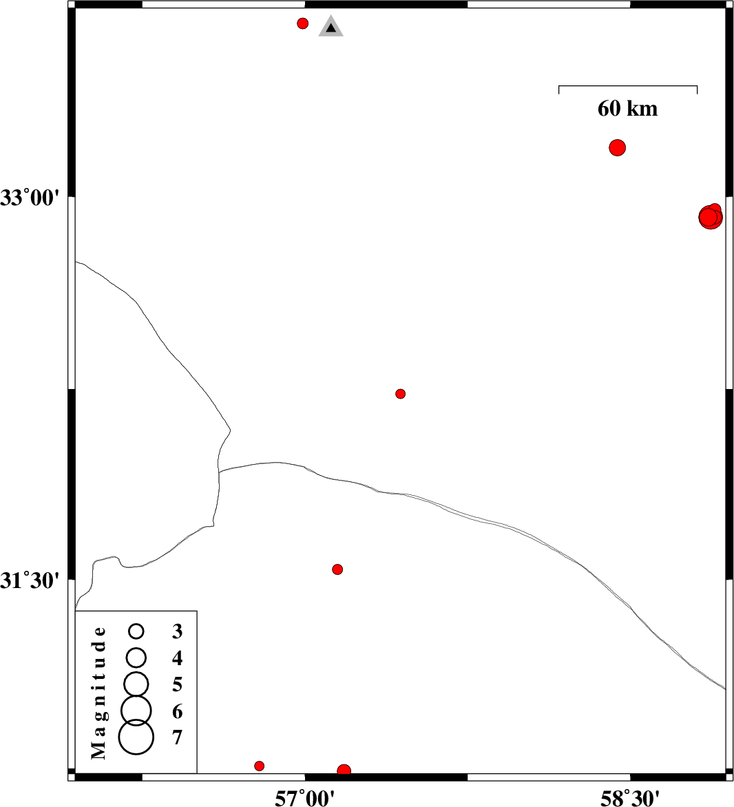 | 2013/10/04 | 18:44:37.3 | 22:14:37.3 | 32.95 | 58.89 | 15 | ML2.5 | Khorasan(south) Province, 33 km West of Birjand | ||