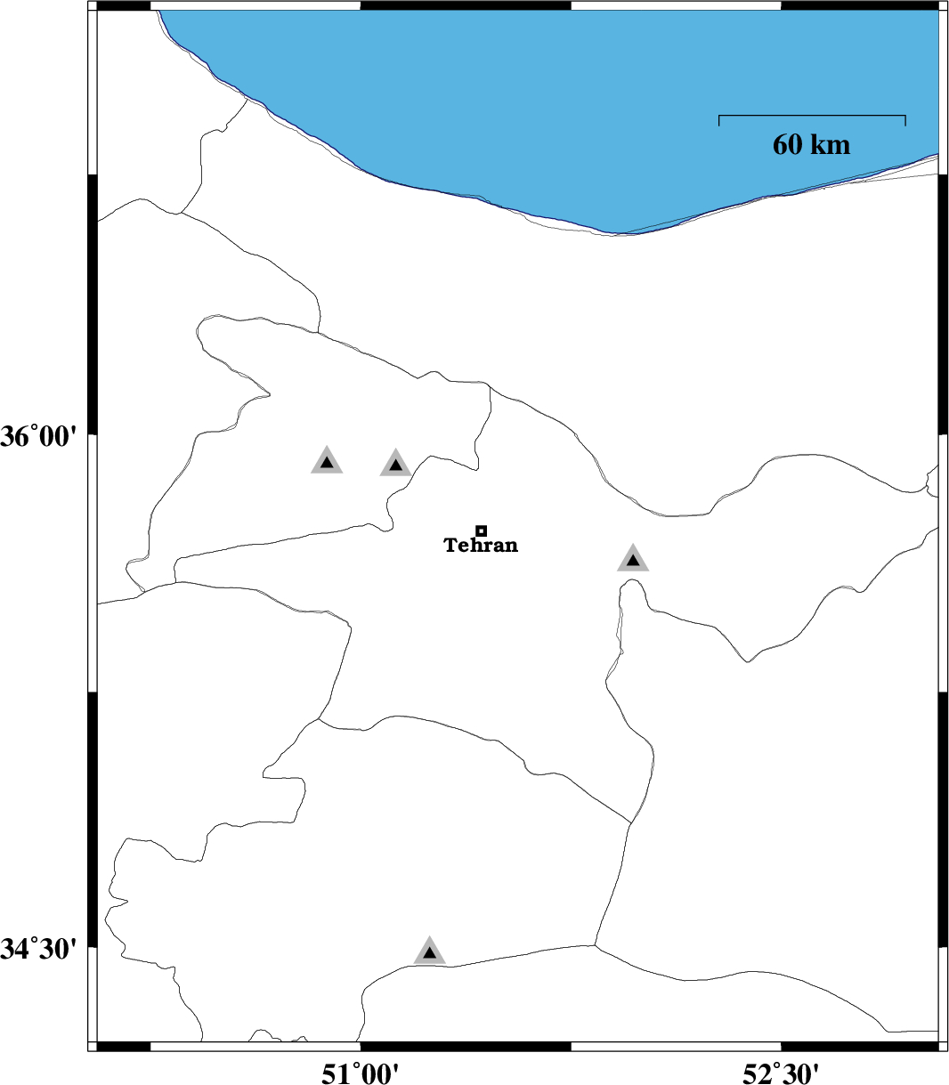 | 2013/10/26 | 09:15:08.9 | 12:45:08.9 | 35.72 | 51.56 | 25 | ML1.8 | Tehran Province, 15 km East of Tehran | ||