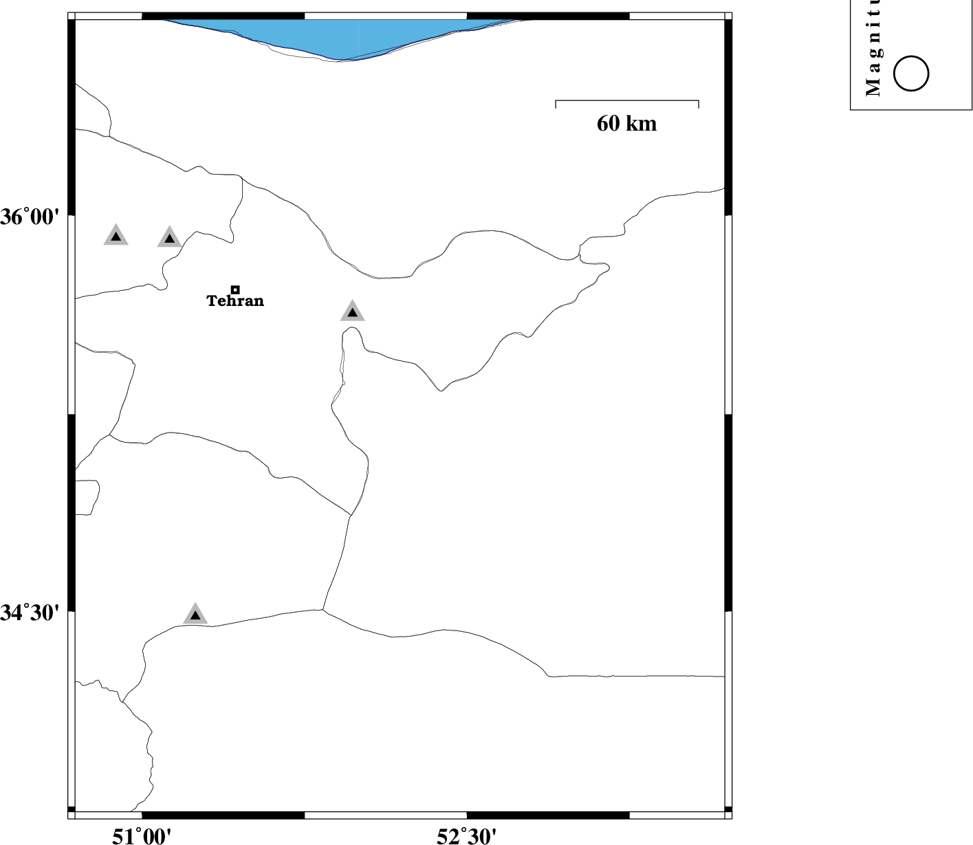 | 2013/10/27 | 19:21:54.6 | 22:51:54.6 | 34.79 | 52.39 | 18 | ML2.1 | Semnan Province, 48 km South of Garmsar | ||