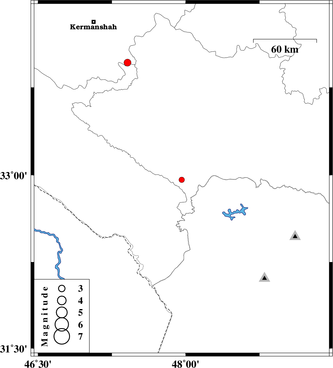 | 2013/10/23 | 13:52:57.9 | 17:22:57.9 | 33.96 | 47.41 | 14 | ML3.3 | Kermanshah Province, 38 km South-West of Harsin |