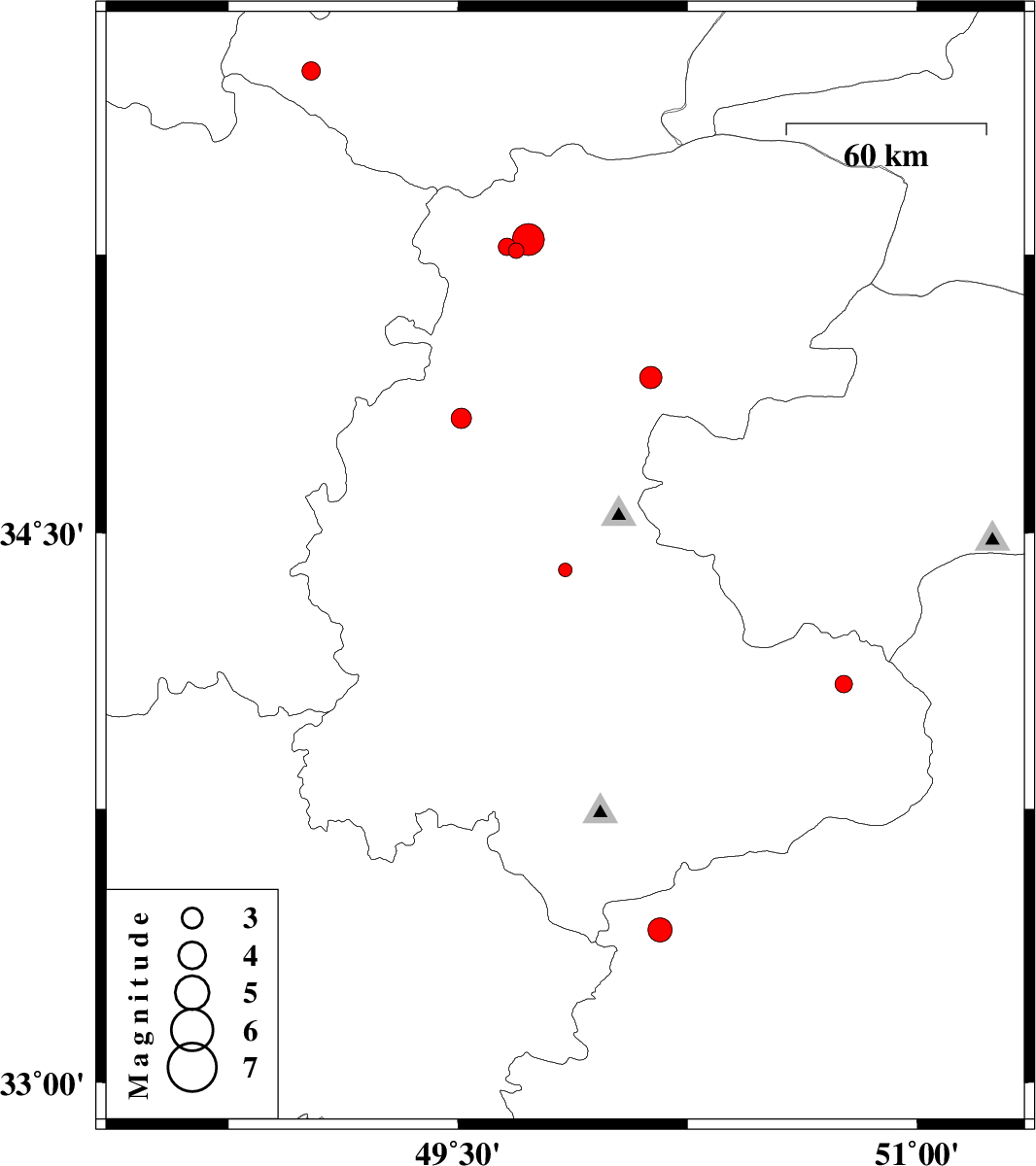 | 2013/11/02 | 11:20:01.0 | 14:50:01.0 | 33.42 | 50.16 | 14 | ML3.5 | Esfahan Province, 13 km West of Golpayegan | ||