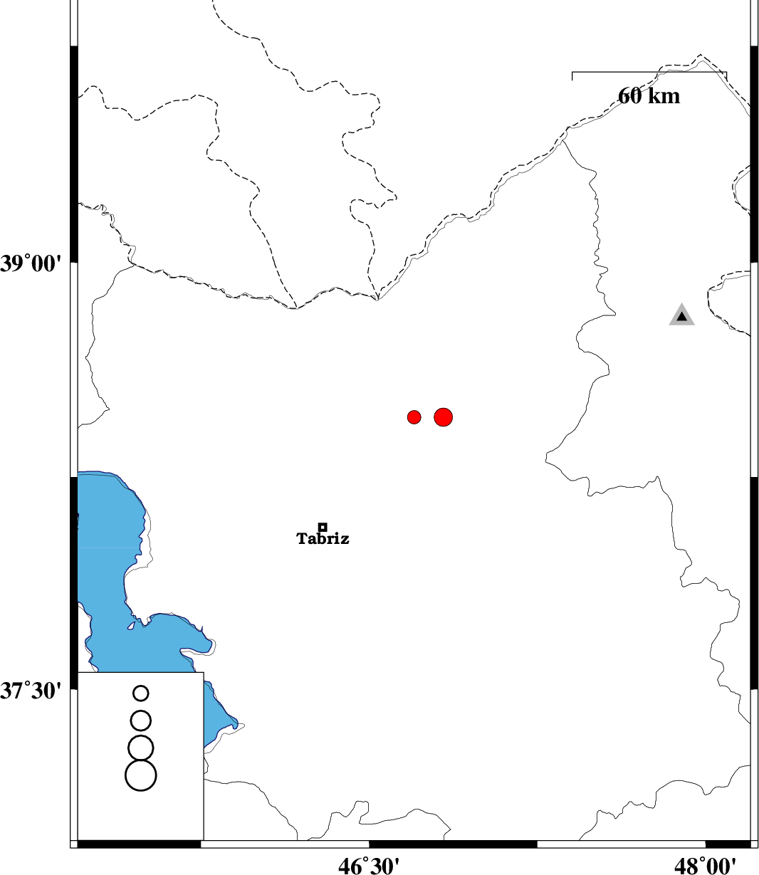 | 2013/10/30 | 16:49:21.7 | 20:19:21.7 | 38.46 | 46.83 | 14 | ML3.6 | Azarbaijan Sharghi Province, 22 km West of Ahar |