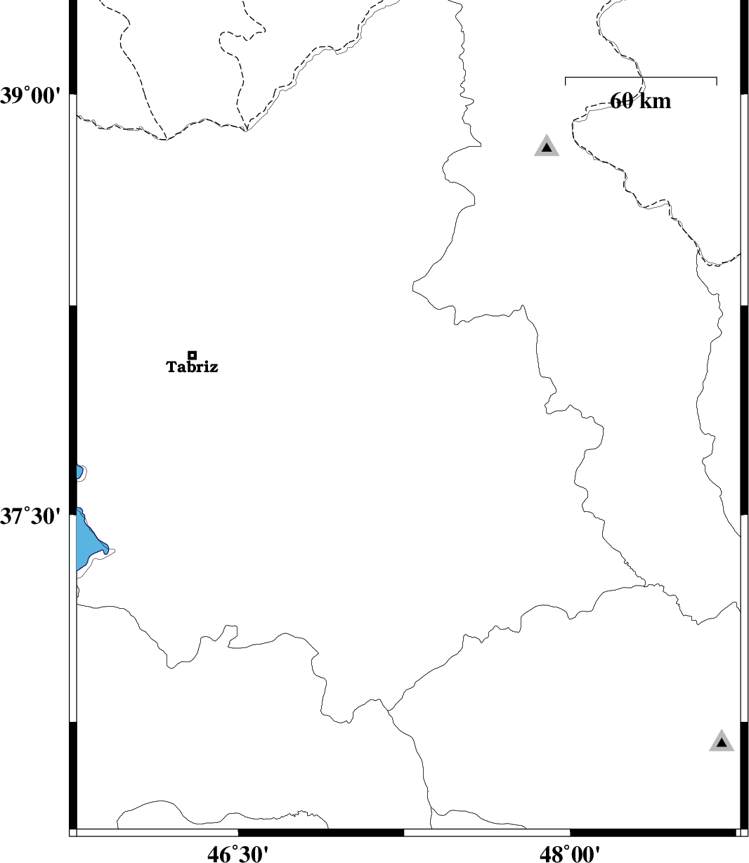 | 2013/10/09 | 18:14:34.6 | 21:44:34.6 | 38.53 | 46.65 | 18 | ML2.7 | Azarbaijan Sharghi Province, 38 km West of Ahar |