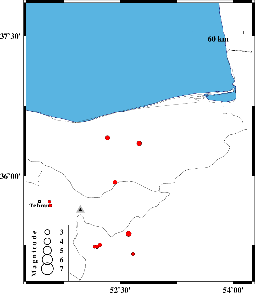 | 2013/10/27 | 19:57:43.6 | 23:27:43.6 | 35.23 | 52.19 | 18 | ML2.3 | Semnan Province, 14 km West of Garmsar | ||