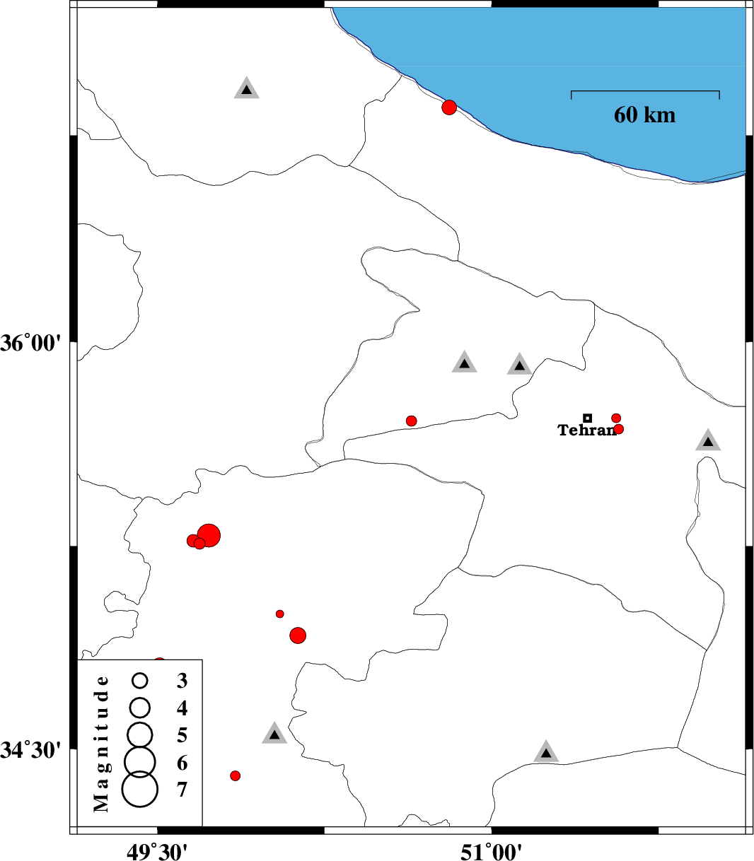 | 2013/10/26 | 09:15:08.9 | 12:45:08.9 | 35.72 | 51.56 | 25 | ML1.8 | Tehran Province, 15 km East of Tehran | ||