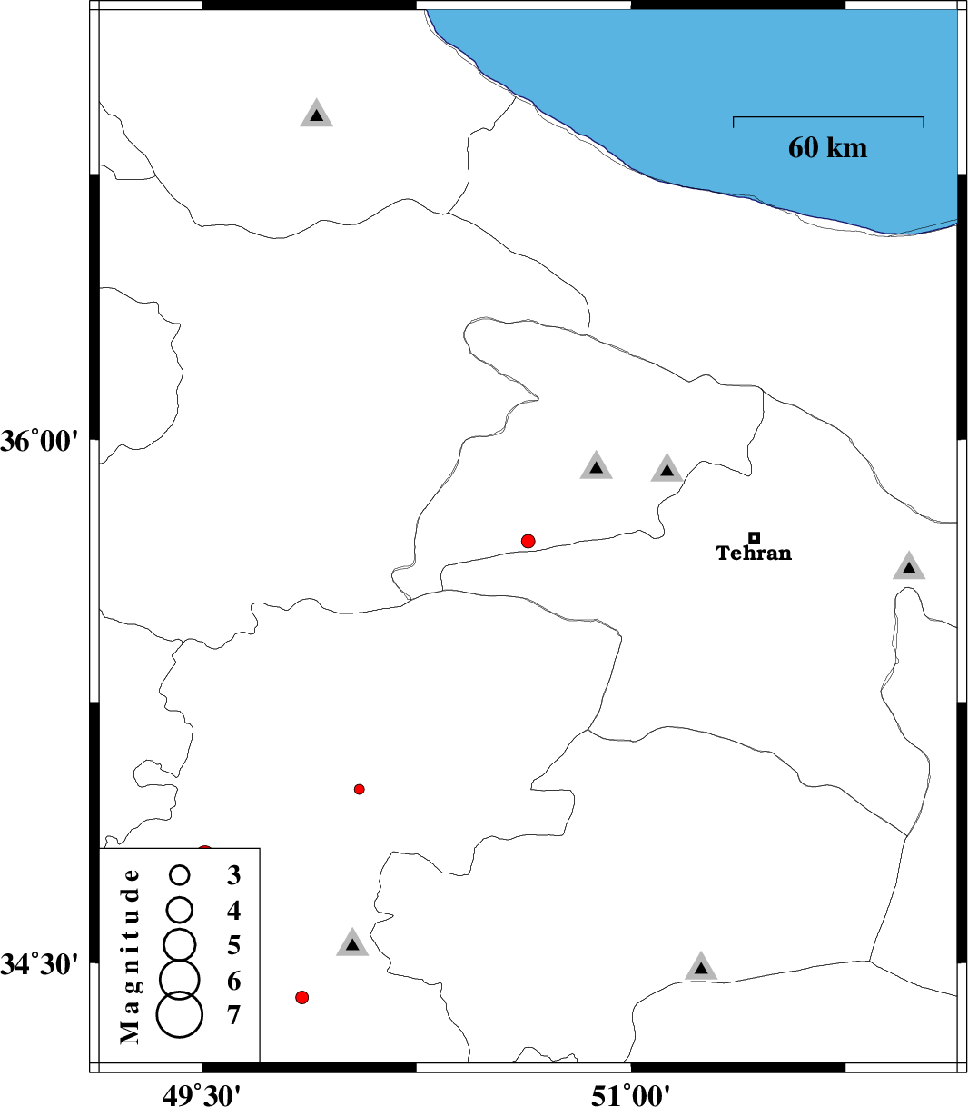 | 2013/11/11 | 07:04:12.0 | 10:34:12.0 | 35.71 | 50.64 | 14 | ML2.1 | Tehran Province, 25 km South of Nazarabad-E-Bozorg | ||