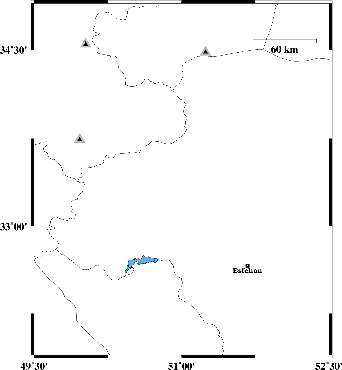 | 2013/11/12 | 09:56:53.6 | 13:26:53.6 | 33.39 | 51 | 39 | ML2 | Esfahan Province, 67 km East of Golpayegan |