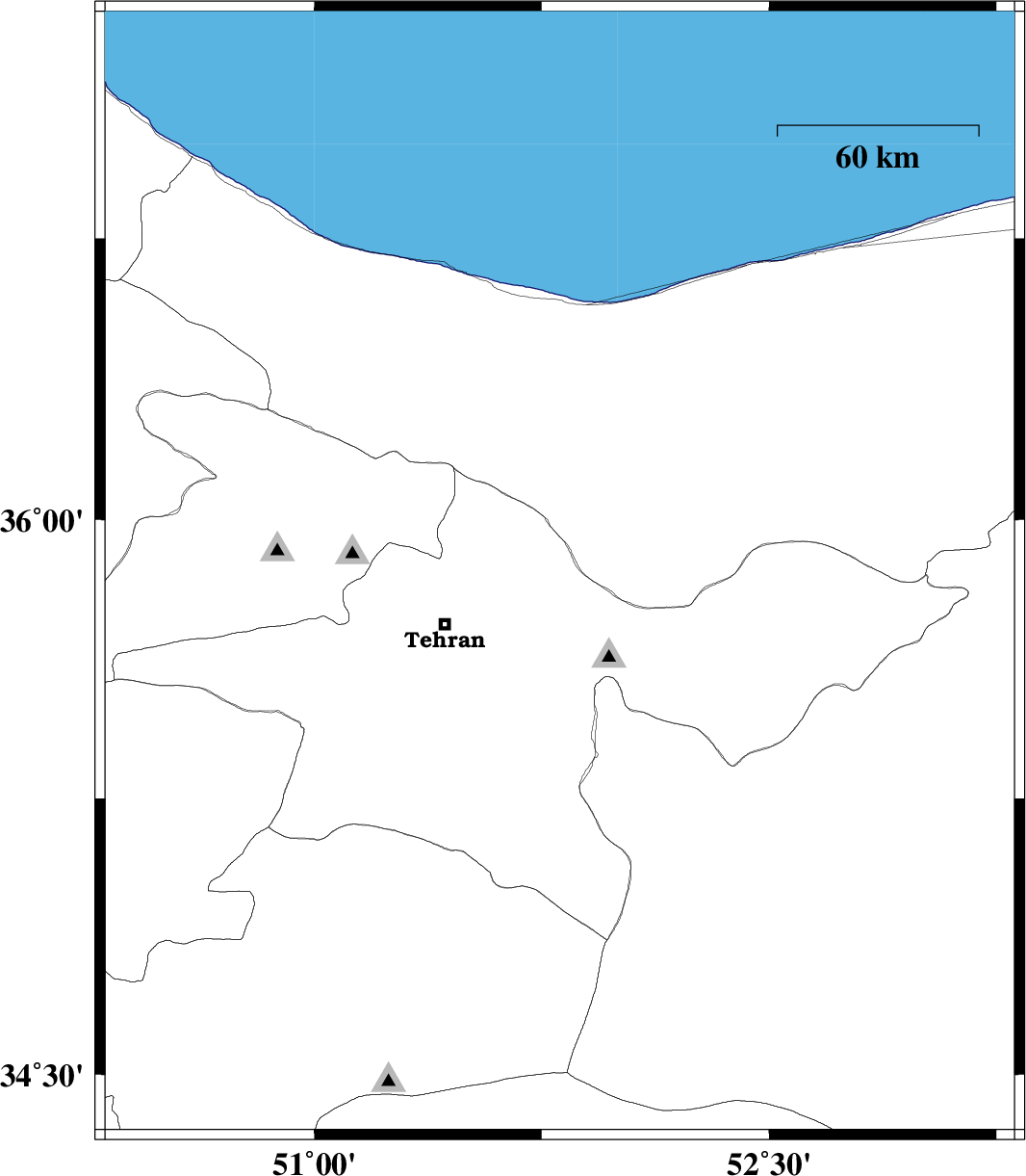 | 2013/10/29 | 04:55:51.7 | 08:25:51.7 | 35.25 | 52.23 | 18 | ML2.3 | Semnan Province, 10 km West of Garmsar | ||