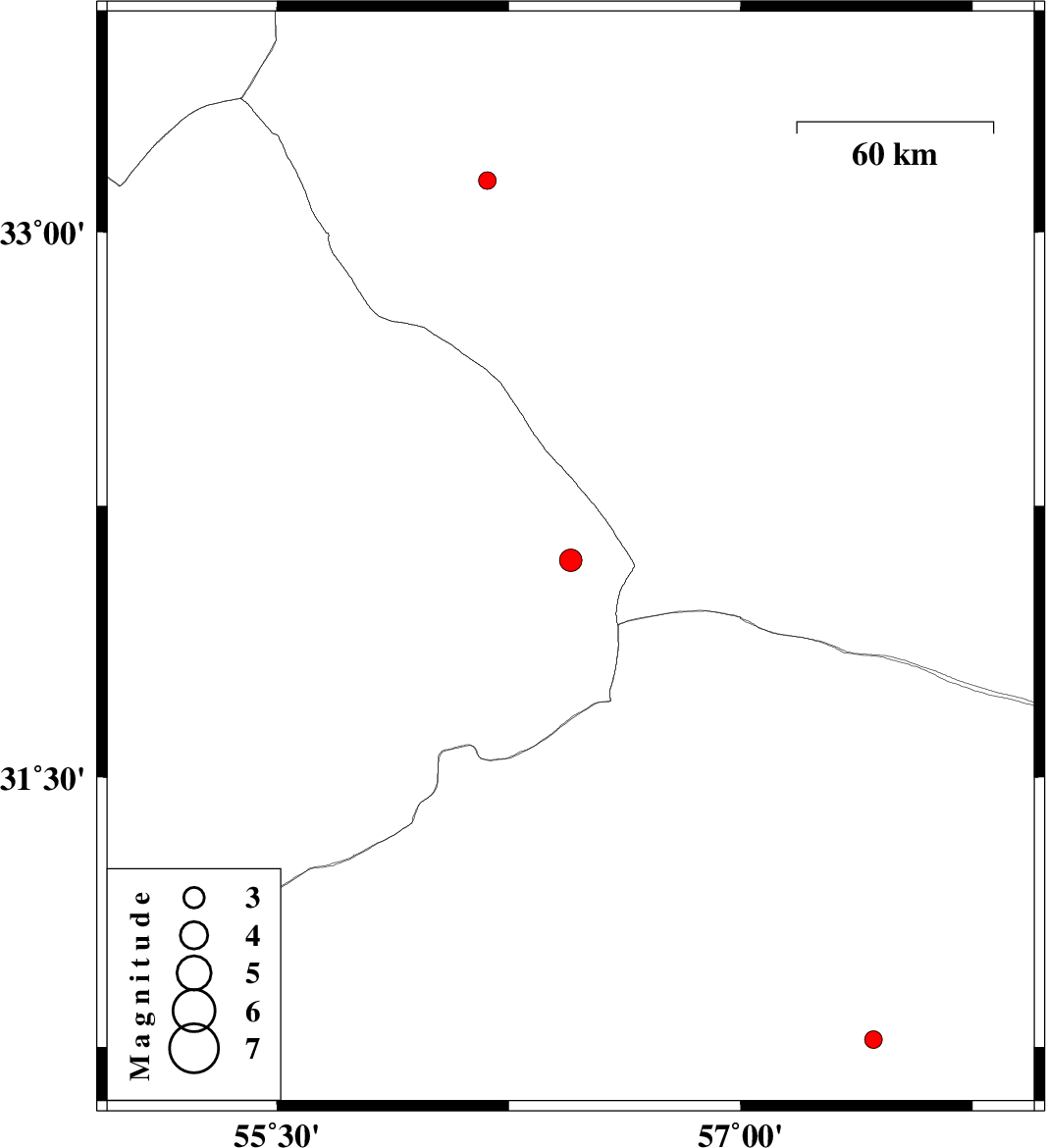 | 2013/11/18 | 11:42:15.2 | 15:12:15.2 | 33.14 | 56.18 | 18 | ML2.5 | Yazd Province, 86 km South-West of Tabas | ||