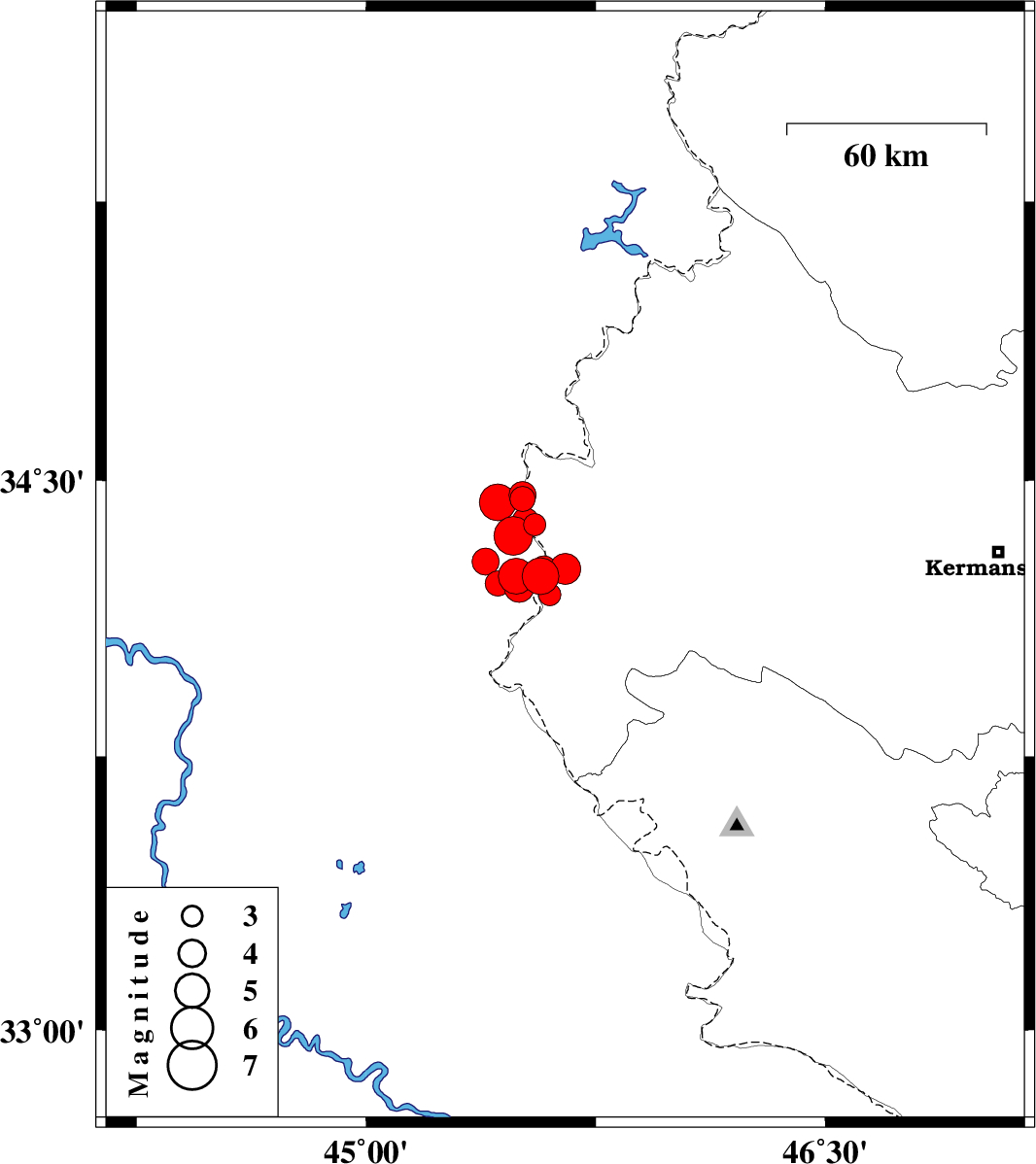 | 2013/11/23 | 06:52:02.4 | 10:22:02.4 | 34.26 | 45.58 | 15 | ML3.8 | Iraq, 28 km South of Qasr-E-Shirin | ||