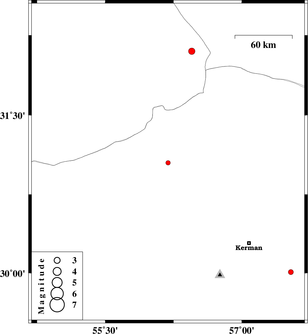| 2013/11/18 | 15:27:43.0 | 18:57:43.0 | 30.01 | 57.54 | 14 | ML2.6 | Kerman Province, 54 km South-East of Kerman |
