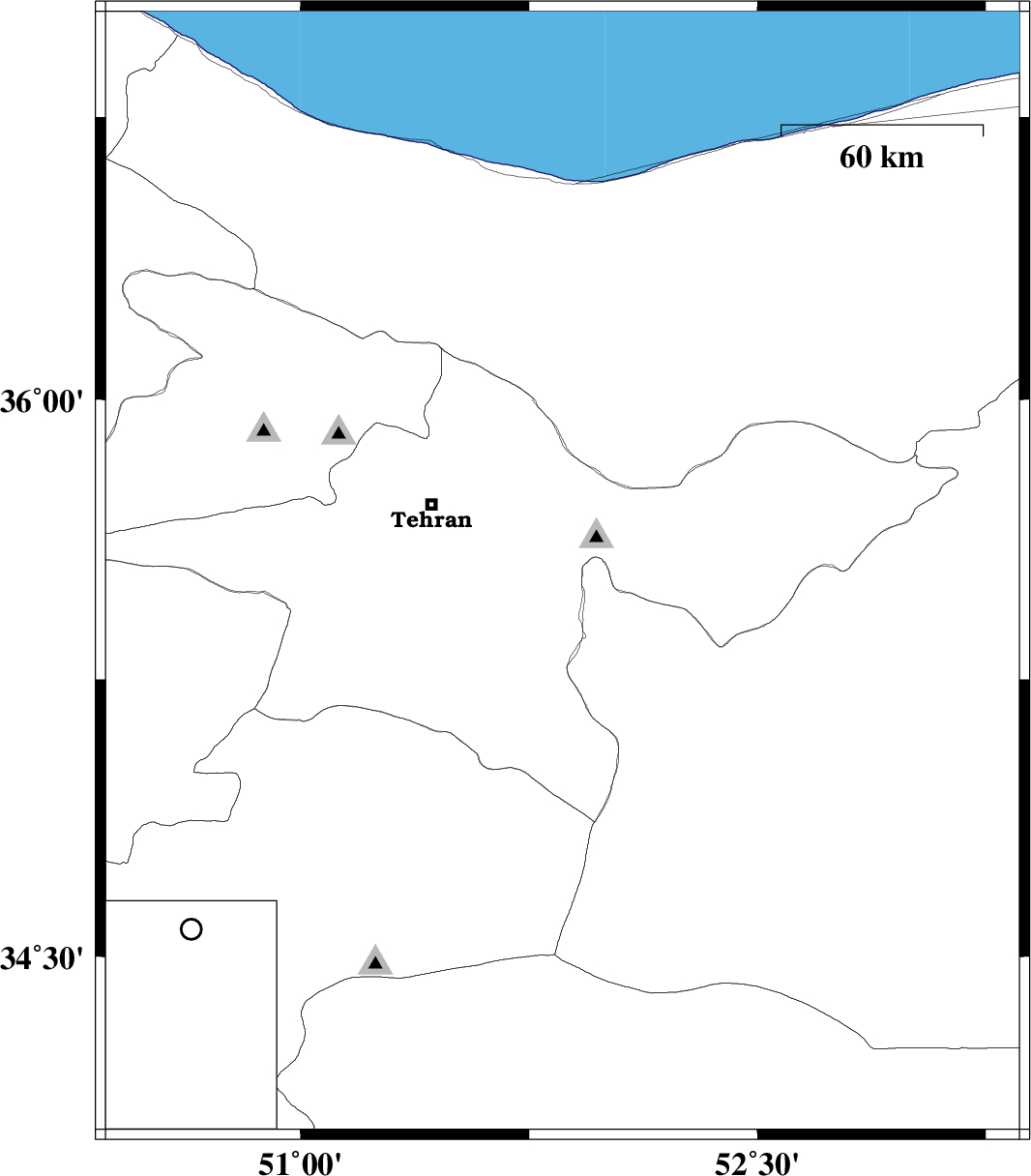 | 2013/11/28 | 00:54:25.6 | 04:24:25.6 | 35.53 | 51.86 | 17 | ML2.4 | Tehran Province, 18 km East of Pakdasht |