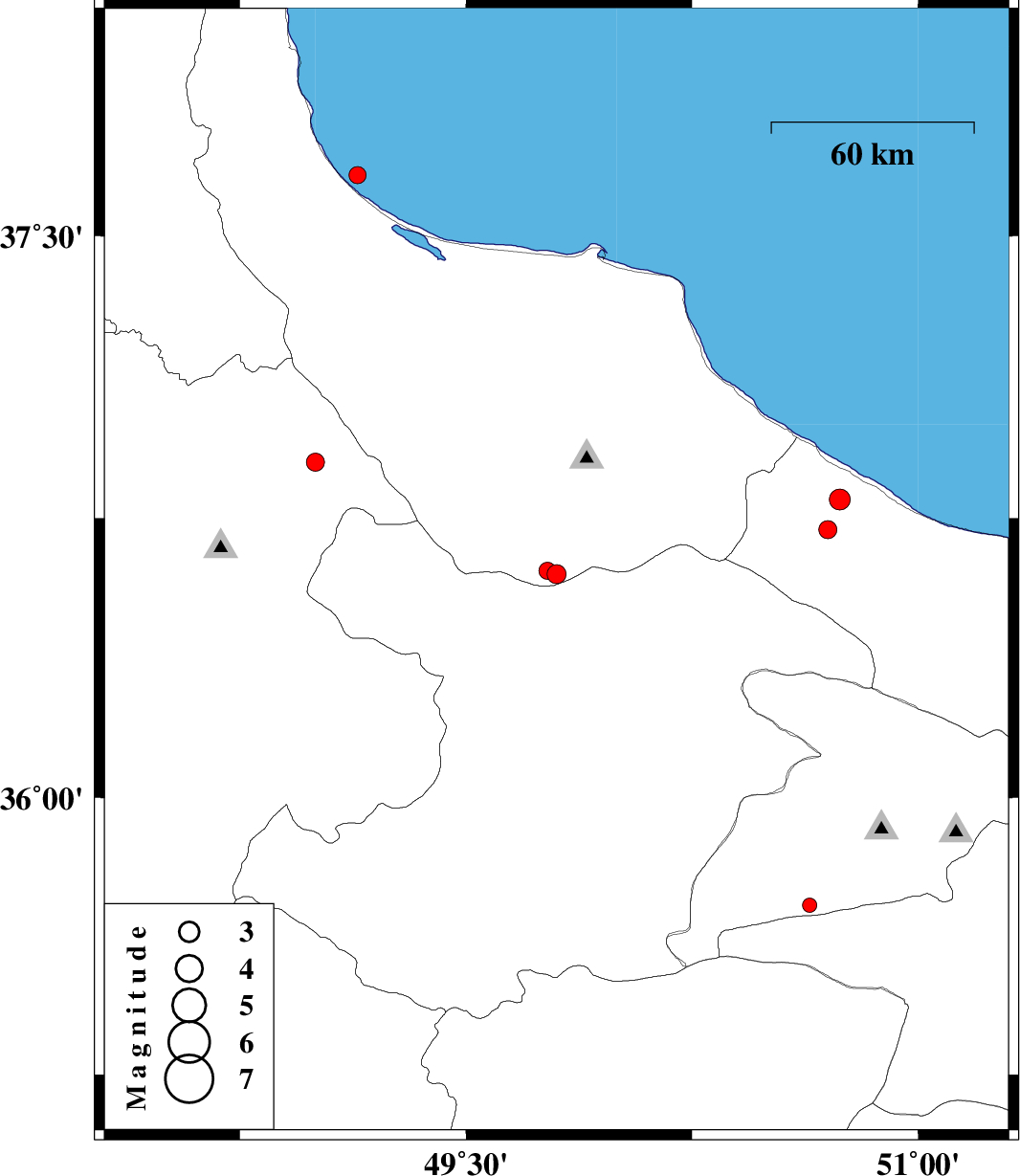 | 2013/12/06 | 11:32:26.6 | 15:02:26.6 | 36.61 | 49.77 | 18 | ML2.5 | Gilan Province, 39 km South-East of Rudbar | ||