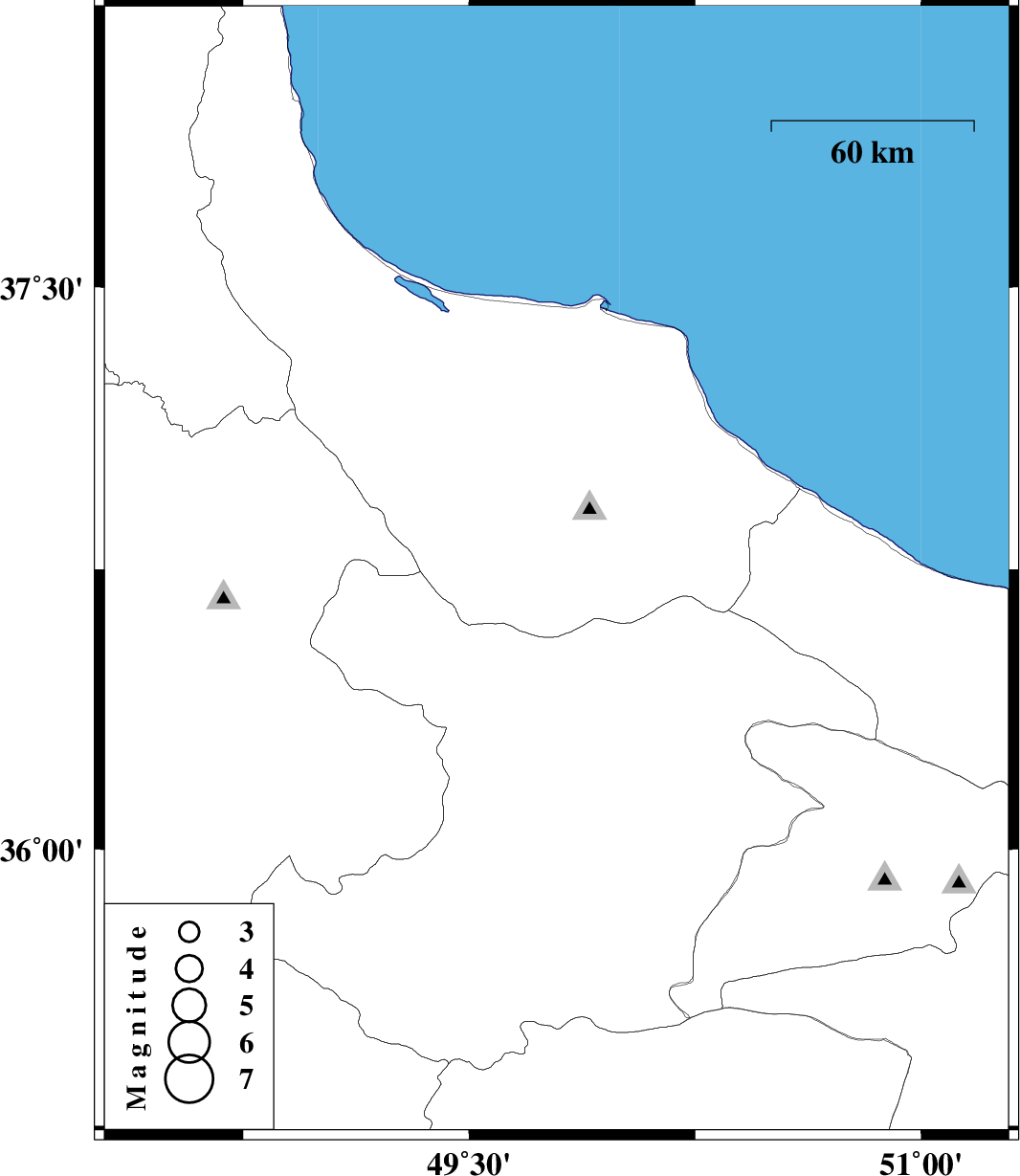 | 2013/12/17 | 15:49:32.8 | 19:19:32.8 | 36.74 | 49.79 | 14 | ML2.7 | Gilan Province, 34 km East of Rudbar |