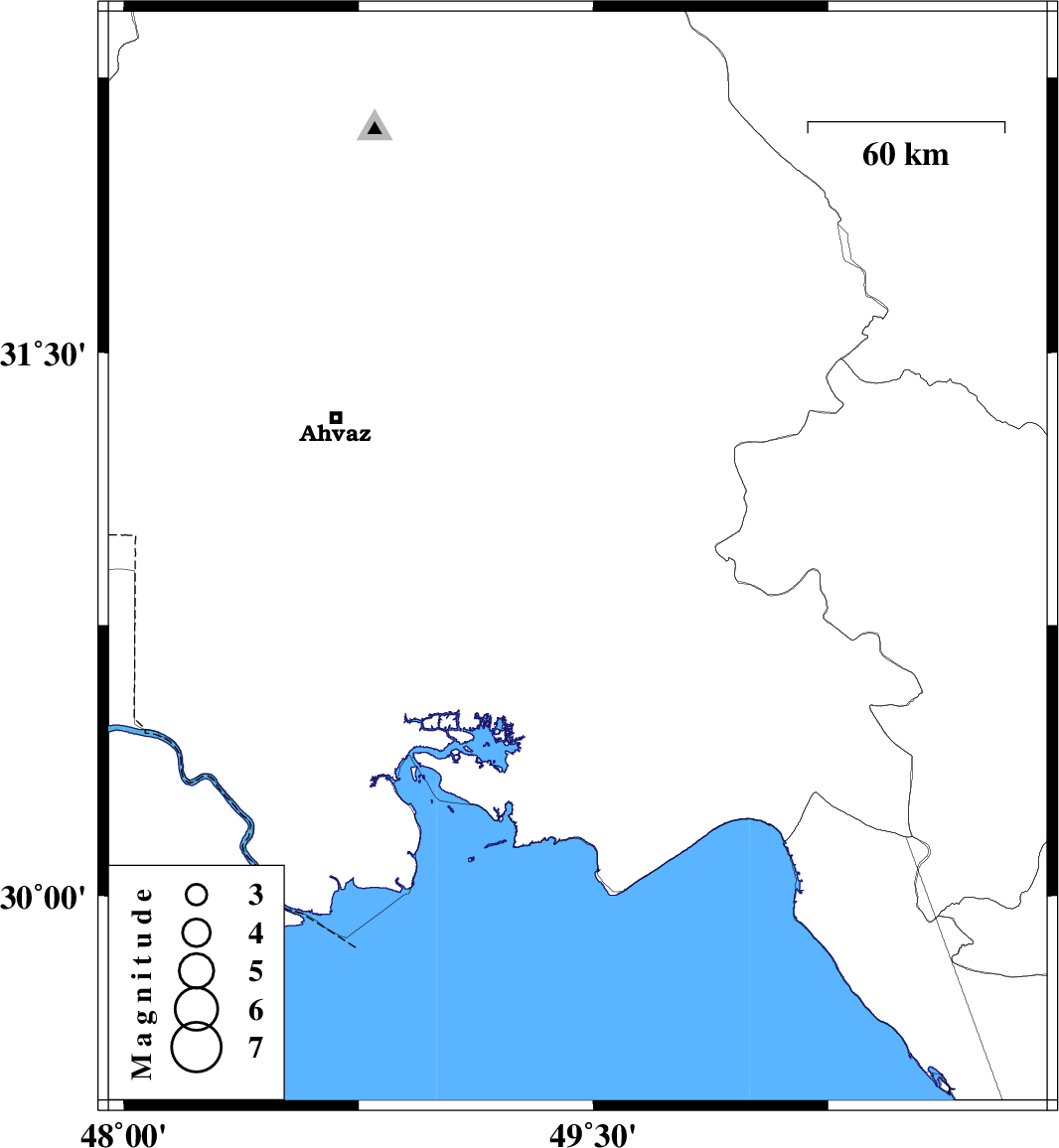 | 2013/12/25 | 19:00:12.2 | 22:30:12.2 | 30.93 | 49.45 | 14 | ML3.1 | Khoozestan Province, 31 km North-West of Omidiyeh |