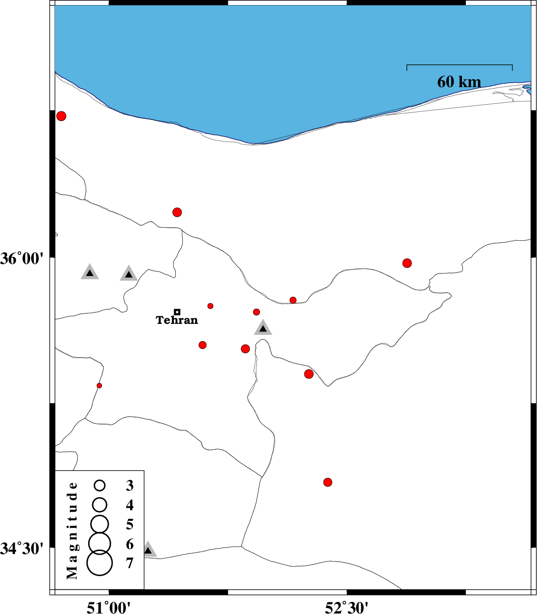 | 2013/12/27 | 14:49:48.4 | 18:19:48.4 | 35.72 | 51.93 | 10 | ML1.8 | Tehran Province, 12 km West of Damavand | ||