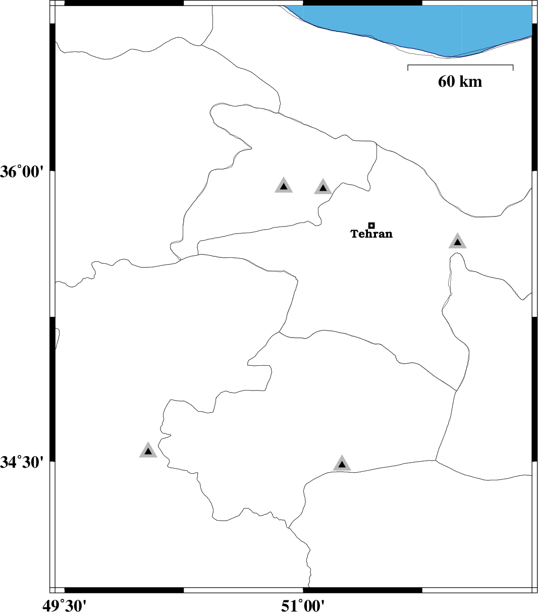 | 2013/12/27 | 14:49:48.4 | 18:19:48.4 | 35.72 | 51.93 | 10 | ML1.8 | Tehran Province, 12 km West of Damavand | ||