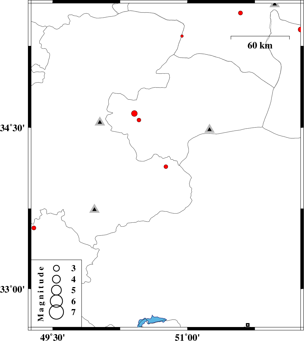 | 2013/12/29 | 10:09:12.0 | 13:39:12.0 | 34.14 | 50.76 | 18 | ML2 | Markazi Province, 18 km North of Delijan | ||