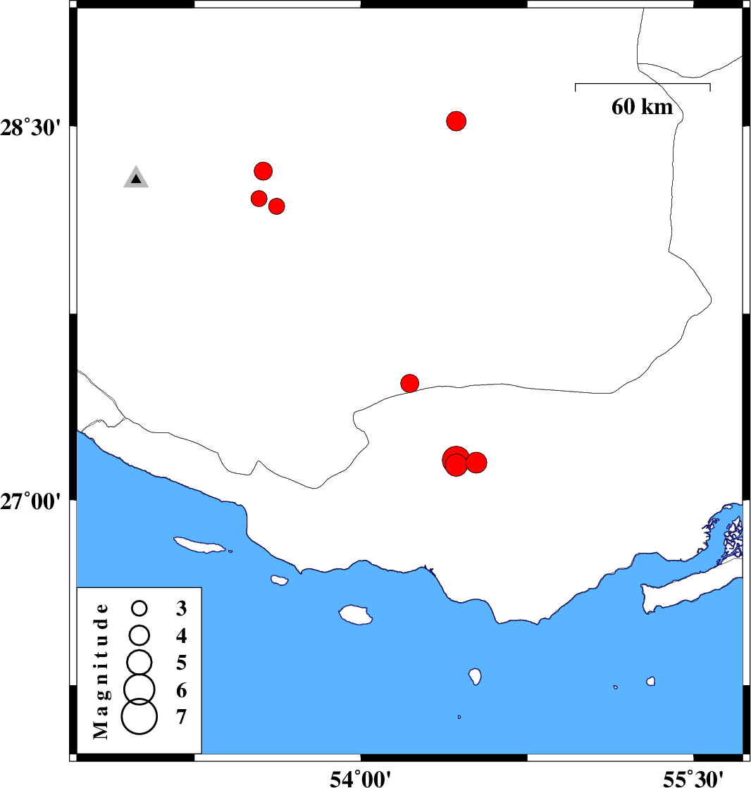 | 2014/01/04 | 21:20:41.2 | 00:50:41.2 | 27.47 | 54.22 | 14 | ML3.7 | Fars Province, 26 km South-West of Lar | ||