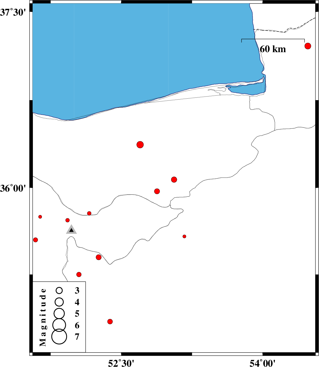 | 2014/01/06 | 16:26:26.6 | 19:56:26.6 | 36.07 | 53.06 | 6 | ML2.7 | Mazandaran Province, 4 km Pol-E-Sefid | ||