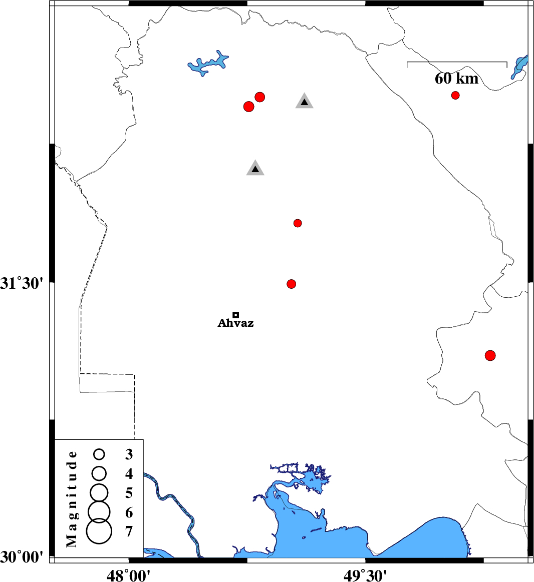 | 2014/01/06 | 08:00:39.8 | 11:30:39.8 | 32.45 | 48.76 | 14 | ML2.9 | Khoozestan Province, 33 km West of Lali | ||