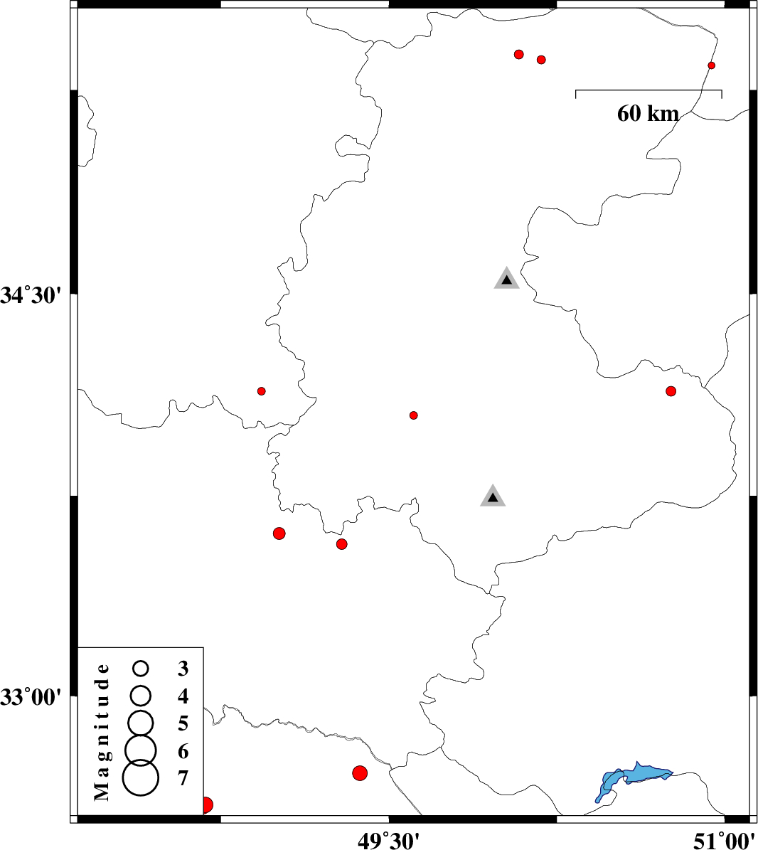 | 2013/12/29 | 10:09:12.0 | 13:39:12.0 | 34.14 | 50.76 | 18 | ML2 | Markazi Province, 18 km North of Delijan | ||
