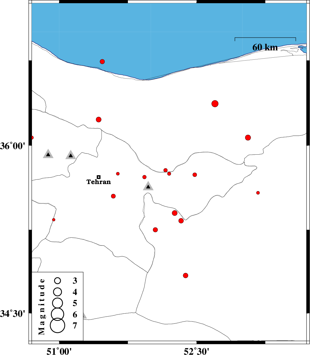 | 2014/01/09 | 16:30:14.6 | 20:00:14.6 | 35.33 | 52.33 | 6 | ML2.4 | Semnan Province, 12 km North of Garmsar | ||