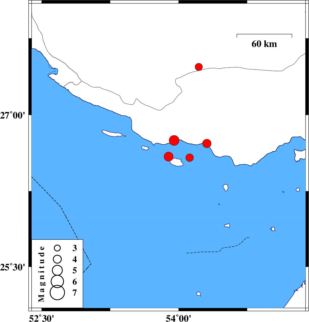 | 2014/01/10 | 14:30:39.3 | 18:00:39.3 | 26.58 | 54.12 | 15 | ML3.8 | Persian Gulf, 73 km West of Bandar-e lengeh | ||