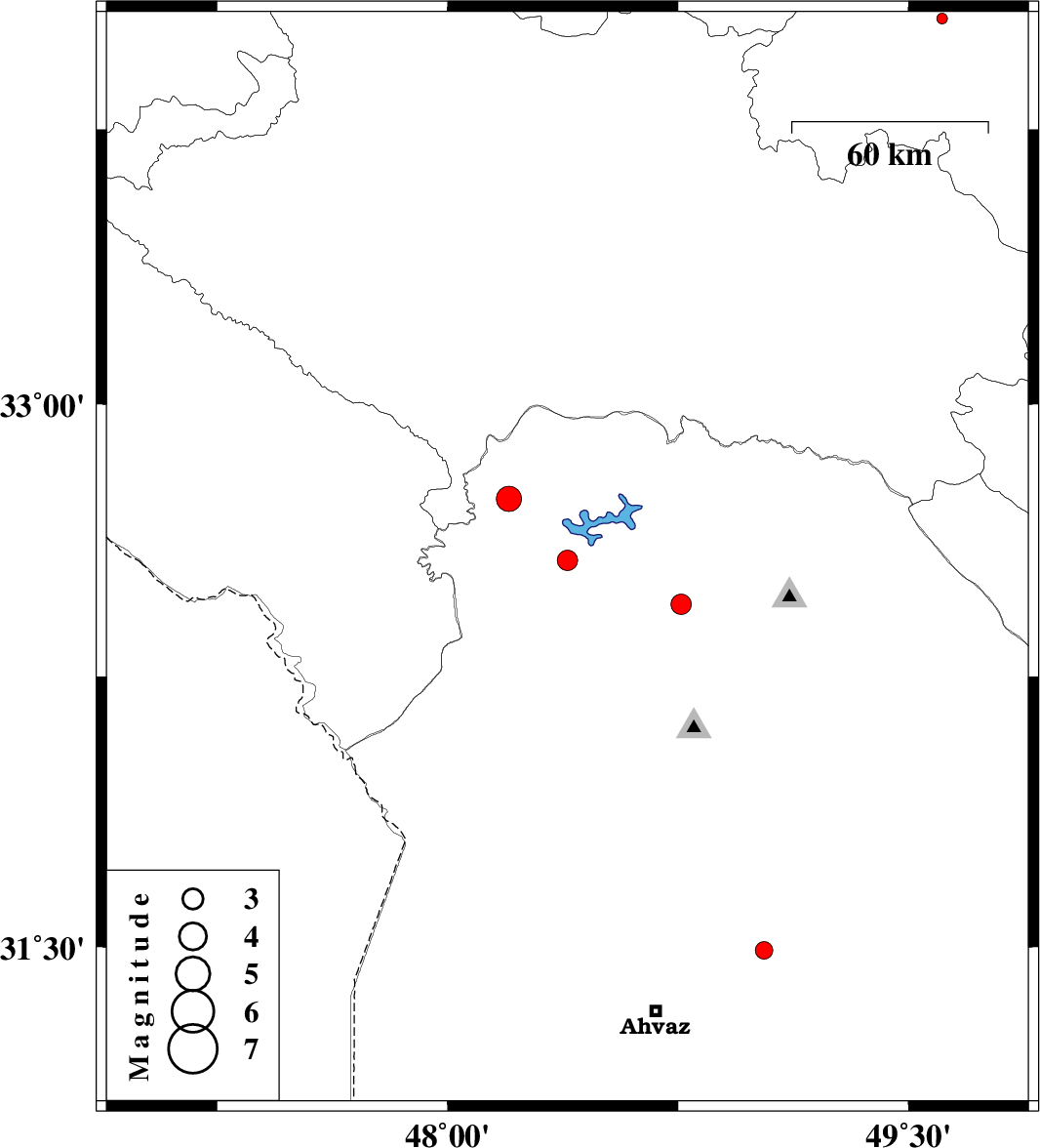 | 2014/01/06 | 08:00:39.8 | 11:30:39.8 | 32.45 | 48.76 | 14 | ML2.9 | Khoozestan Province, 33 km West of Lali |