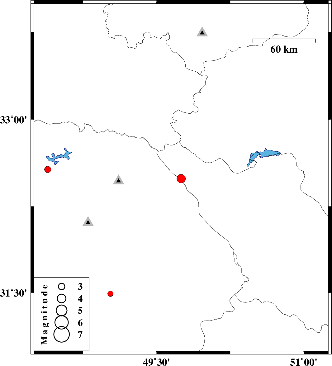 | 2014/01/08 | 05:27:38.7 | 08:57:38.7 | 31.49 | 49.03 | 29 | ML2.6 | Khoozestan Province, 38 km North-East of Ahvaz |