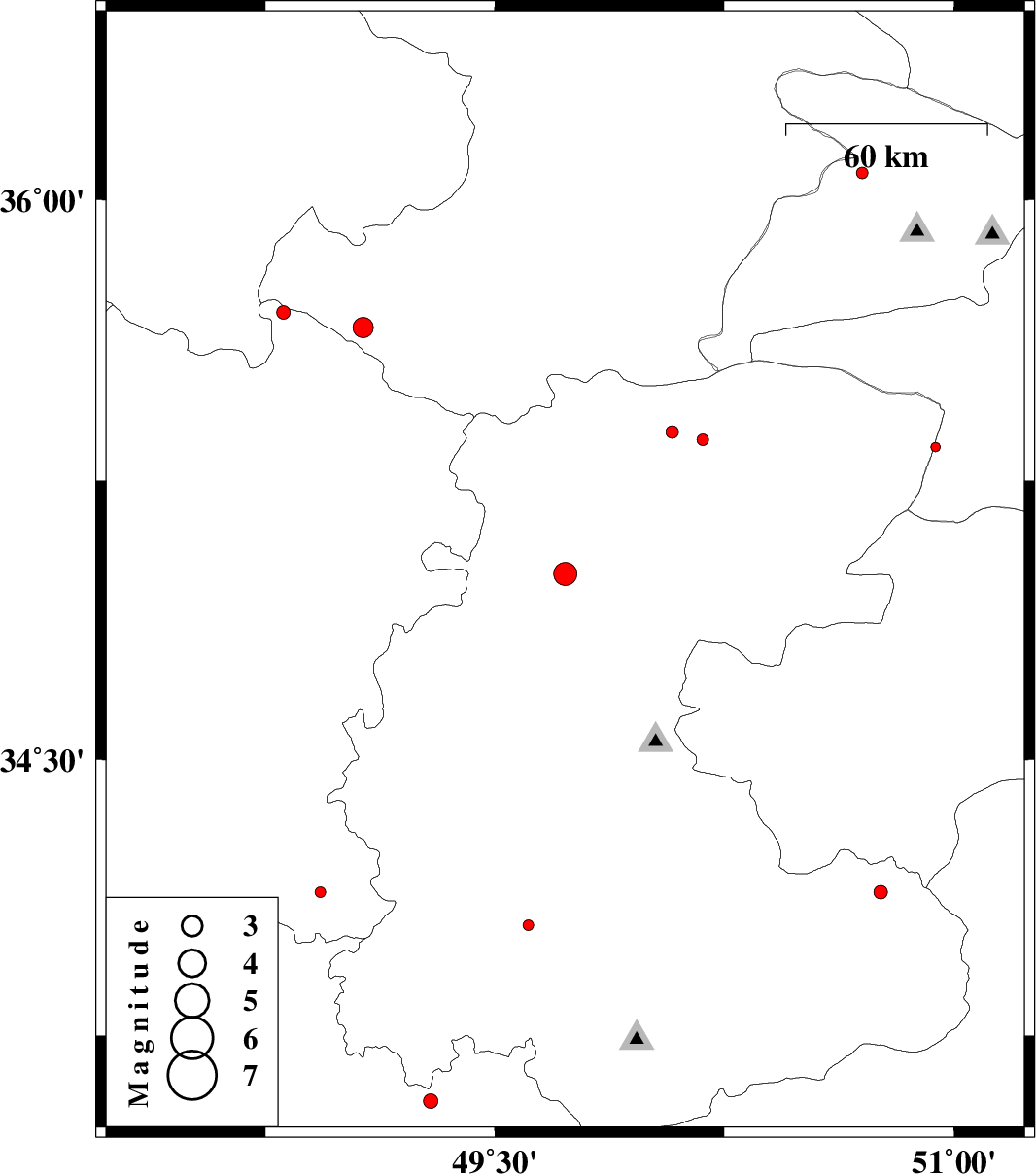| 2013/12/27 | 04:01:39.2 | 07:31:39.2 | 33.57 | 49.29 | 15 | ML2.1 | Lorestan Province, 21 km North-West of Azna |
