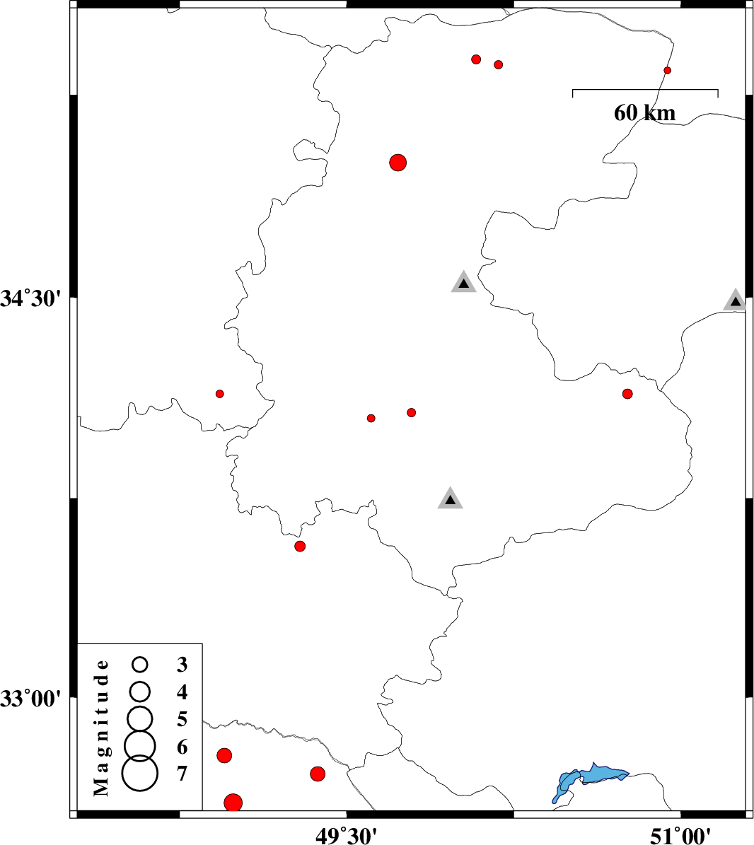 | 2013/12/27 | 04:01:39.2 | 07:31:39.2 | 33.57 | 49.29 | 15 | ML2.1 | Lorestan Province, 21 km North-West of Azna | ||