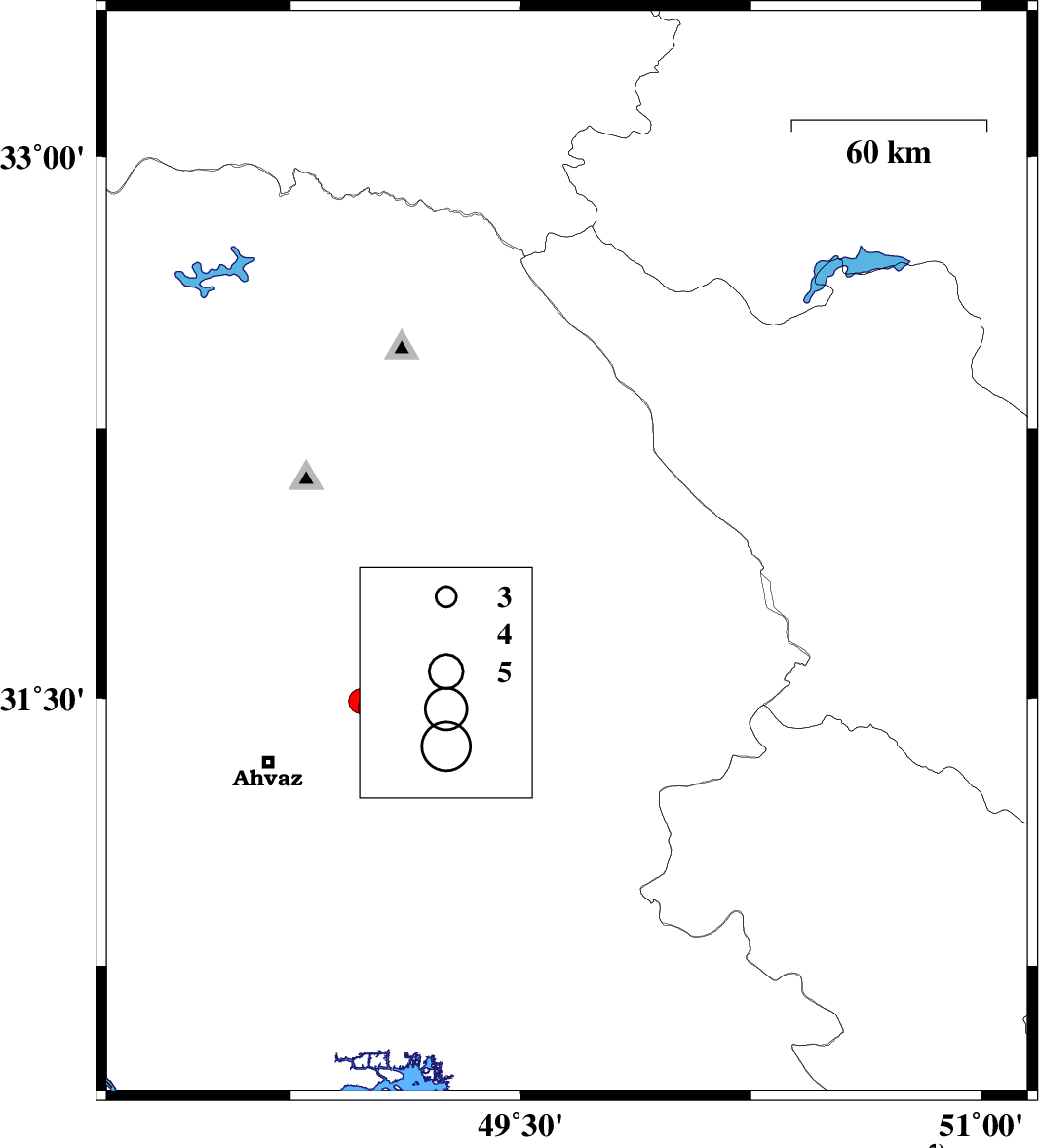 | 2014/01/16 | 02:13:07.1 | 05:43:07.1 | 30.79 | 49.28 | 14 | ML2.9 | Khoozestan Province, 28 km North of Bandar-e mahshahr | ||