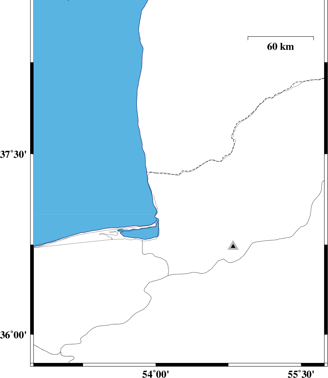 | 2014/01/14 | 22:56:36.2 | 02:26:36.2 | 37.59 | 55.36 | 16 | ML3.1 | Golestan Province, 26 km North-West of Kalaleh |